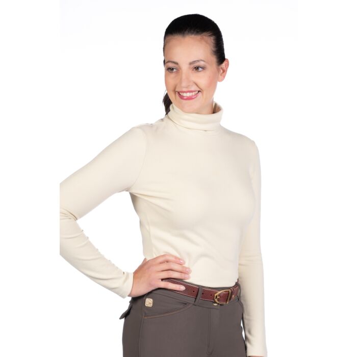 Soe ja eriti pehme kรตrge kaelusega pluus, mis sobib ideaalselt kandmiseks jahedamal ajal nii ratsutamisel kui ka igapรคevaselt, pakkudes kehale mugavat soojust ja liikumisvabadust.
