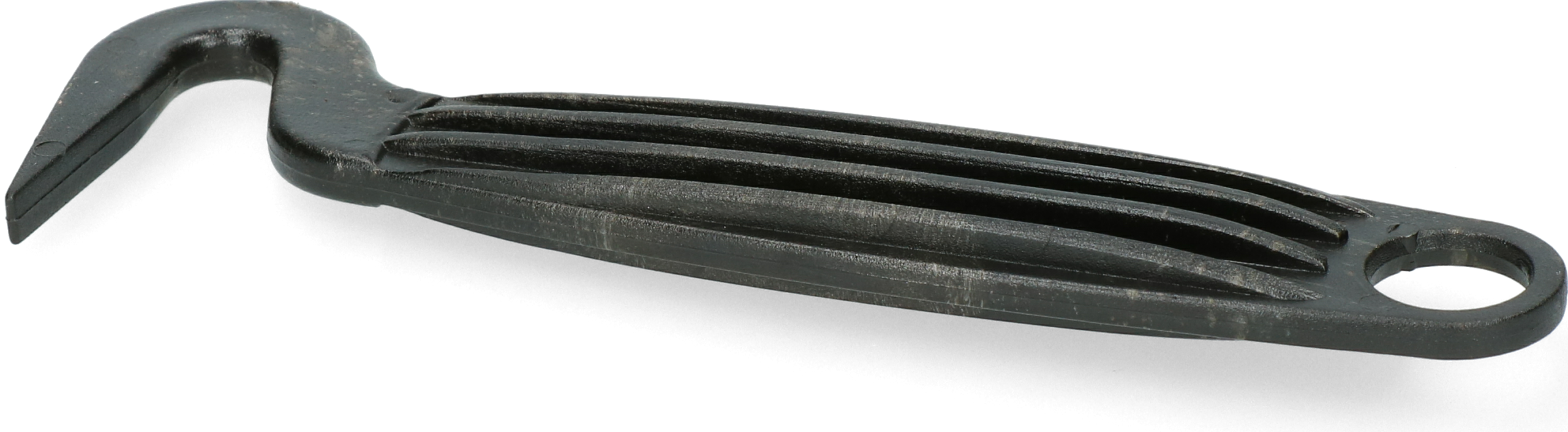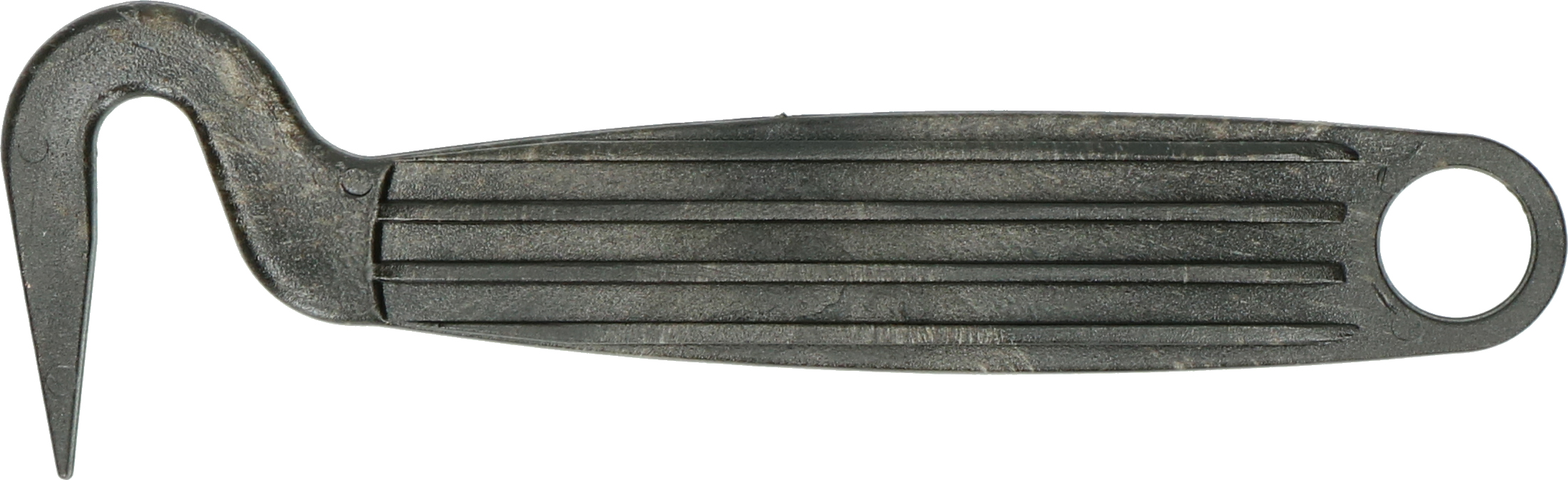 A really durable, fully molded plastic hoof pick. Easy storage due to the integrated hole.