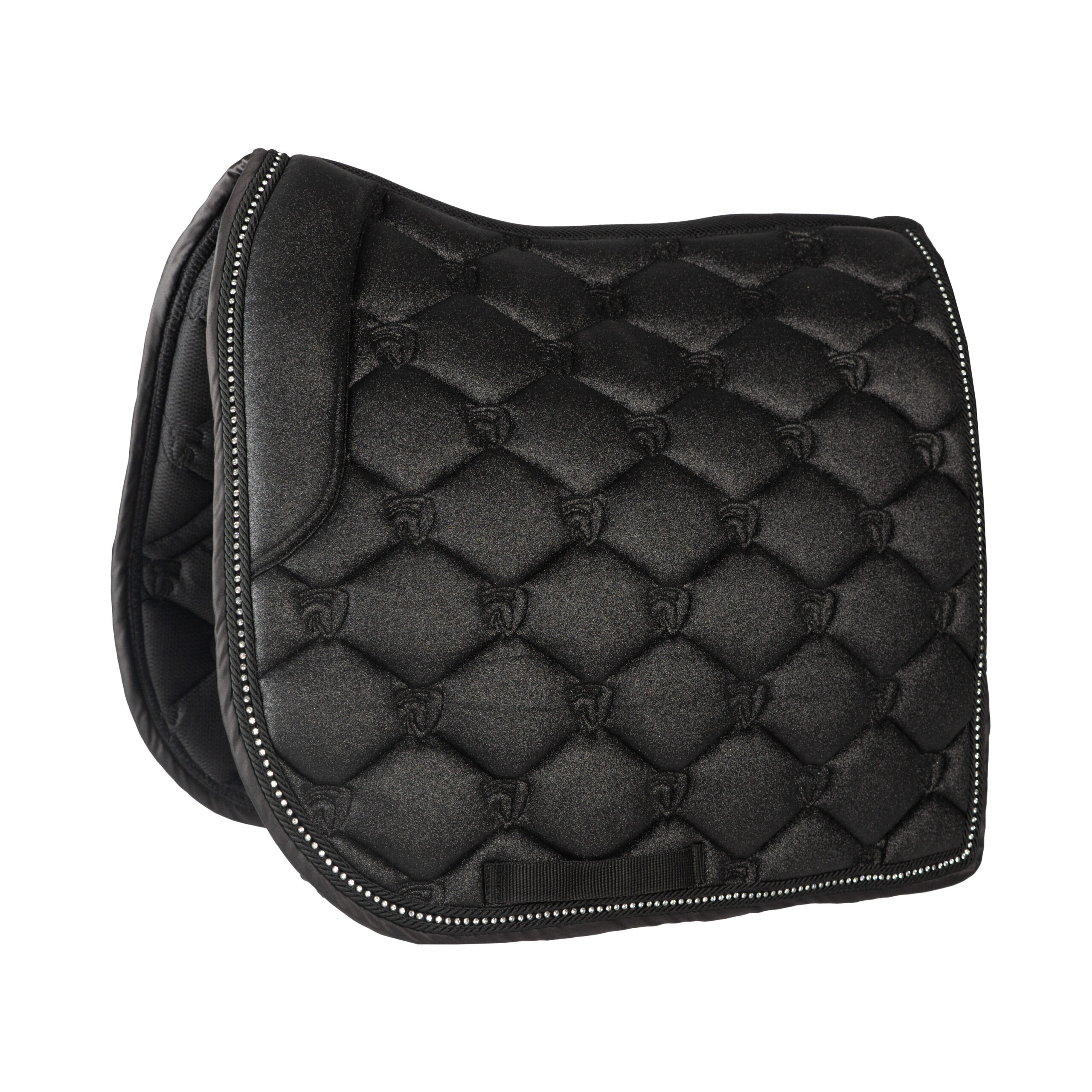 Elegant glitter saddle pad with diamonds and decorative cord.