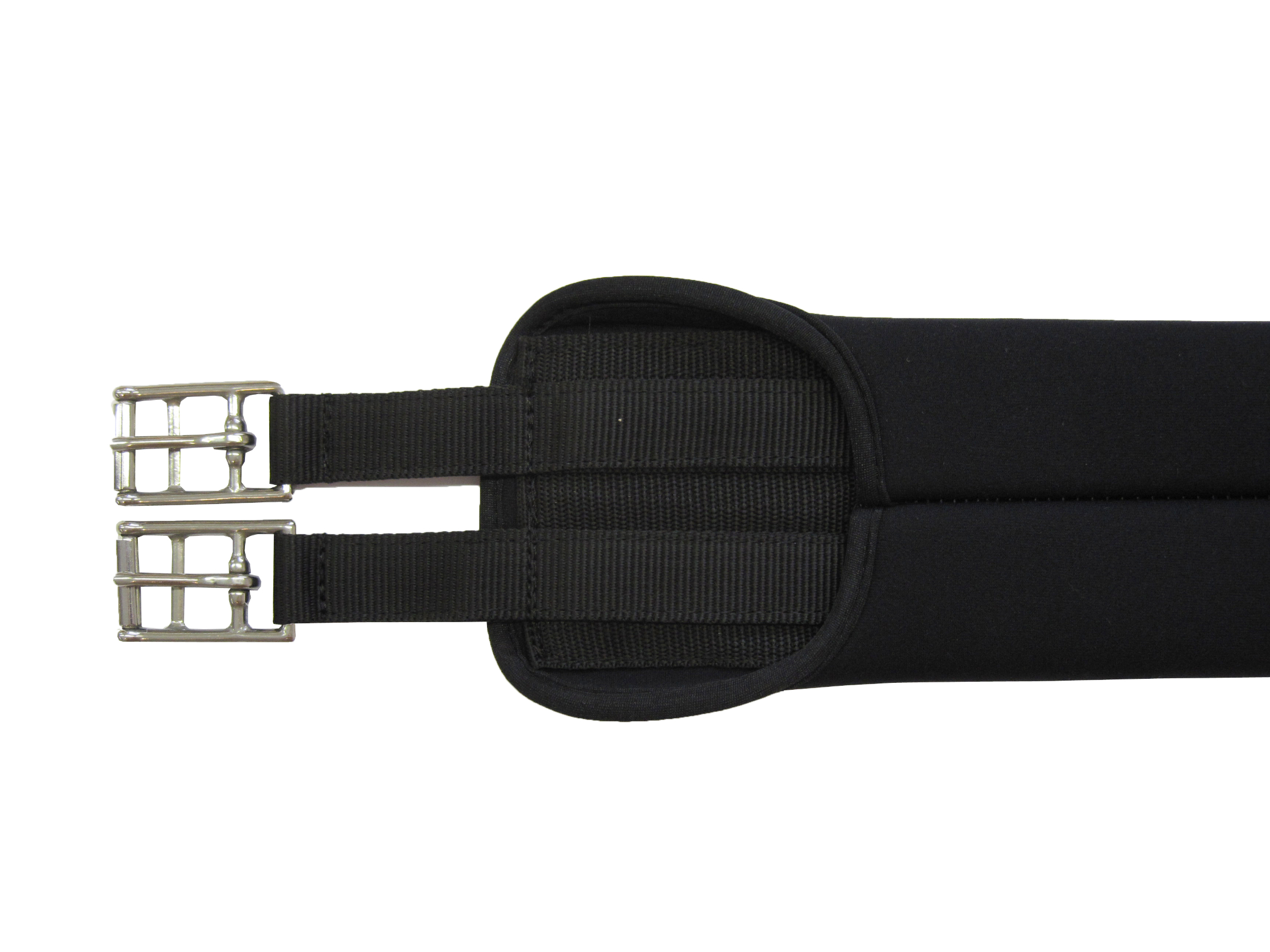 Neoprene girth for jumping/all-purpose saddles. Product specifications: Sturdy nylon gussets. Stainless steel roller buckles.