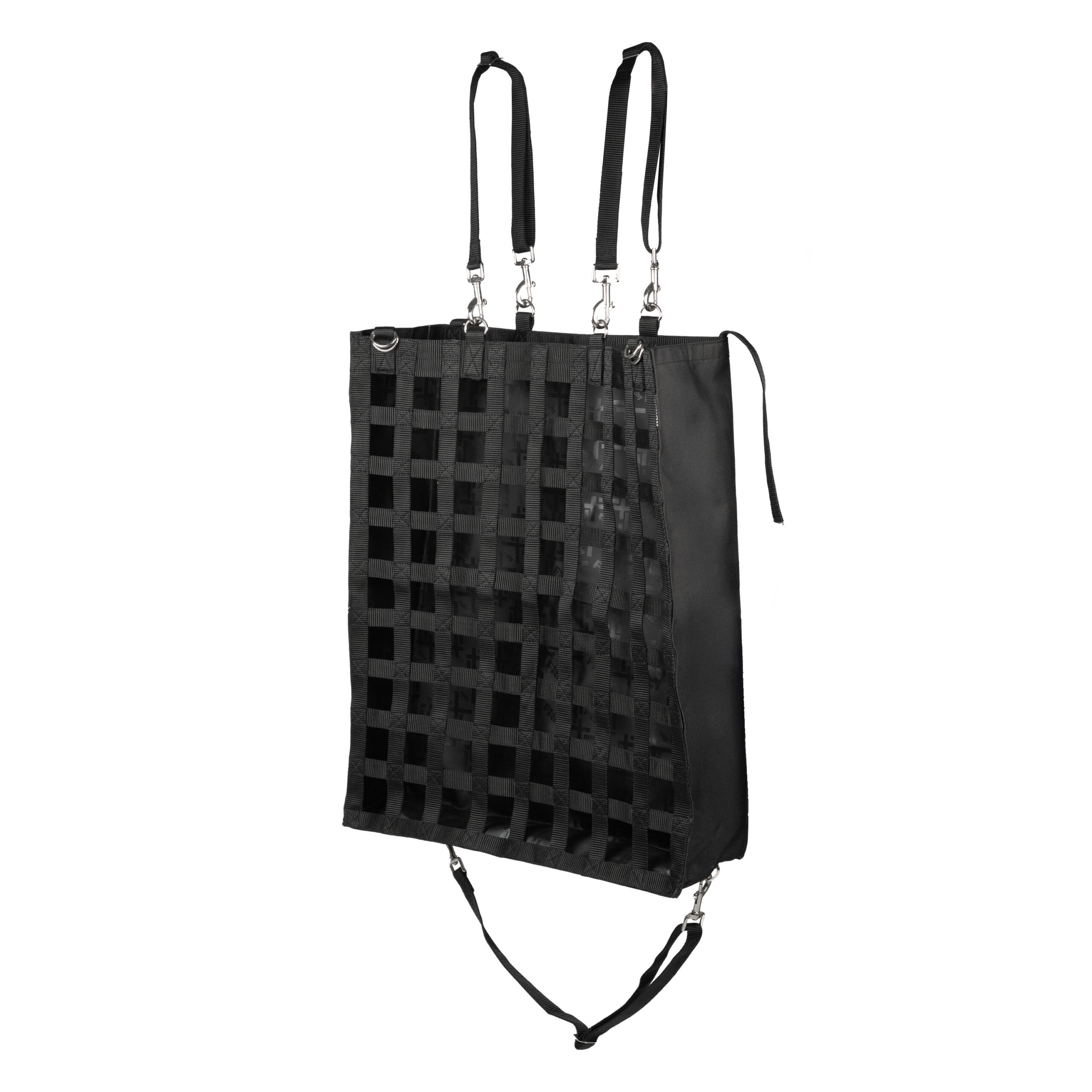 Strong hay bag to feed hay neatly and efficiently to your horse. Thanks to the wide opening at the top, the hay bag is quick and easy to fill. With adjustable loops and carabiners, the hay bag can be hung in various ways in the stable or trailer. Product specifications: Slowfeeder Easy to fill Multiple adjustable loops and hooks: Mesh width: 45 cm: Dimensions: : 68 x 55 x 17 cm Material: : 100% polyester