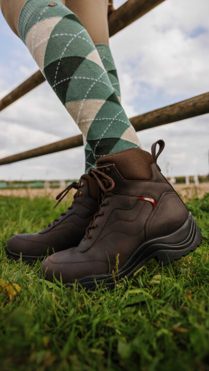 Outdoor boot Cornwall Product specifications: Short outdoor boots made of buff leather and suede Waterproof lining Mesh lining Two pull loops on top of the boots TPR rubber anti-slip sole Fixed insole