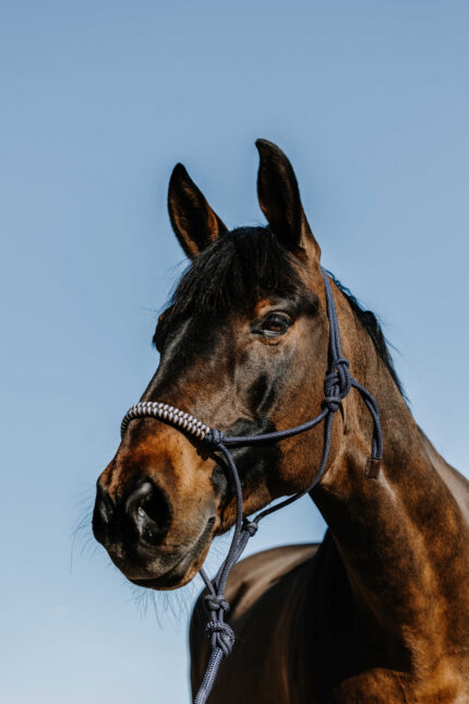 A rope halter can be used during liberty training groundwork and for riding. It’s important to handle the rope halter carefully and attach it correctly. Consult an experienced instructor if you’ve never trained with a rope halter. Never leave a rope halter on in the stable, pasture, or paddock, and never tie your horse with it. A rope halter won’t break or come loose when subjected to force. Material: PP polypropylene