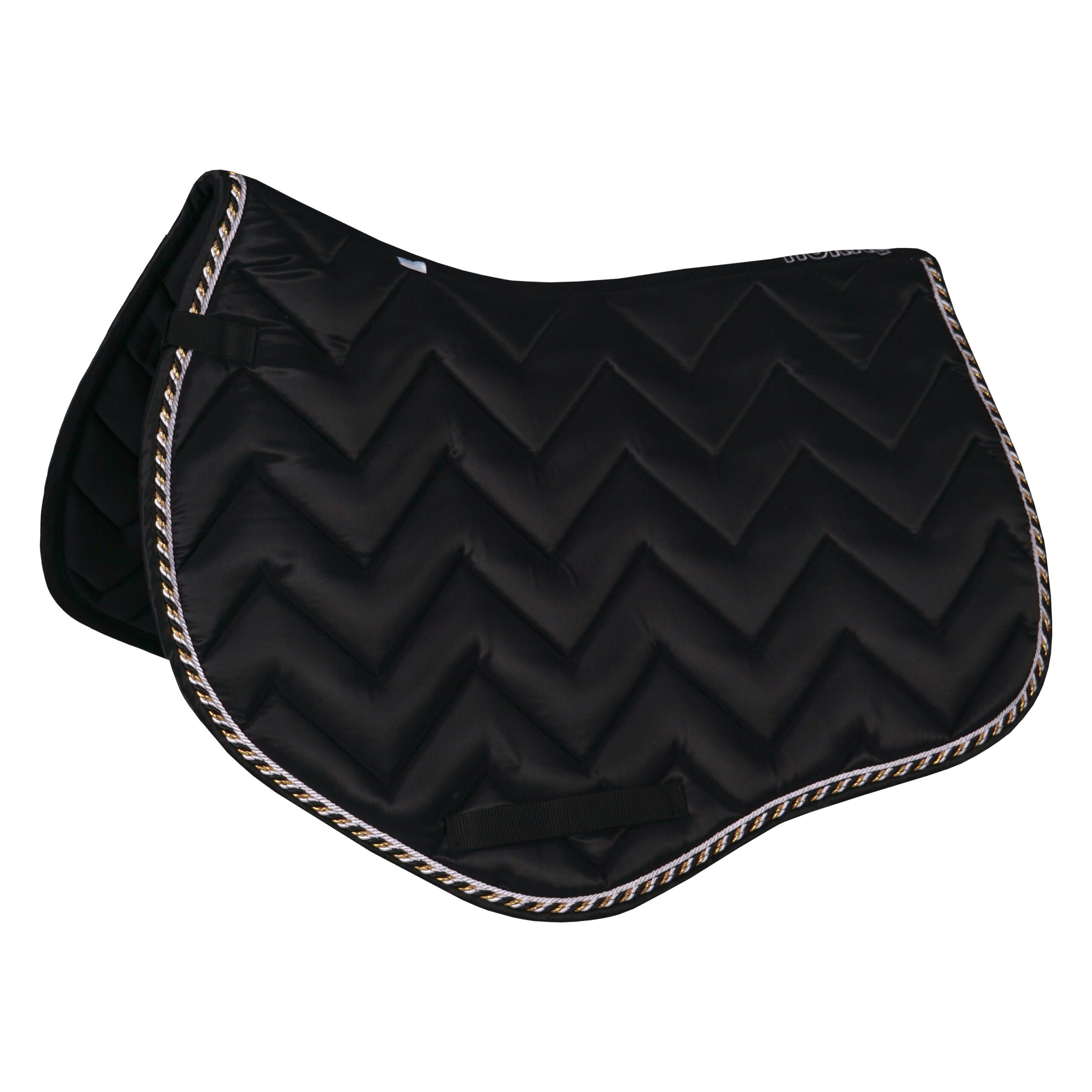 Stylish close-contact saddle pad with an excellent fit. The pad has a satin exterior and a Coolmax interior that regulates heat and moisture absorption. Product specifications: Satin look with subtly colored double piping; Optimal CC shape; Coolmax interior that regulates heat and moisture absorption; Material: Satin exterior, Coolmax interior, cotton filling (8MM PVC foam & 300G polyfill 100% Polyester)