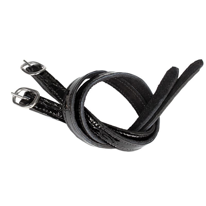 Silmapaistvad krokodillinaha mustriga lakknahast kannuserihmad, mis lisavad ratsasaabastele luksusliku ja elegantse viimistluse.