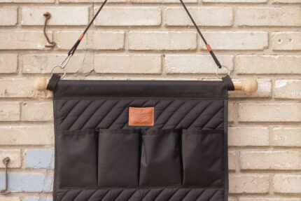 Stable organizer with various storage compartments, easy to attach to the stable. Product specifications: < Equipped with four Velcro loops Equipped with 11 compartments, 2 of which with zipper Finished with black and white details The back of the organizer is waterproof Dimensions: < Width: 60 cm Height: 85 cm Material: < 100% Polyester