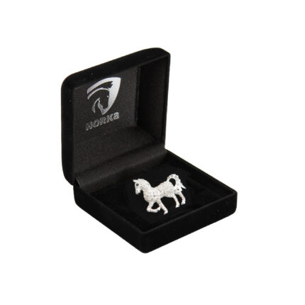 Elegantne hobuseraua kujuline rinnanรตel, mis sobib suurepรคraselt ratsavรตistlusteks vรตi piduliku ratsariietuse tรคienduseks. Kaunistatud sรคdelevate kivikestega, mis annavad aksessuaarile silmapaistva ja stiilse vรคlimuse.