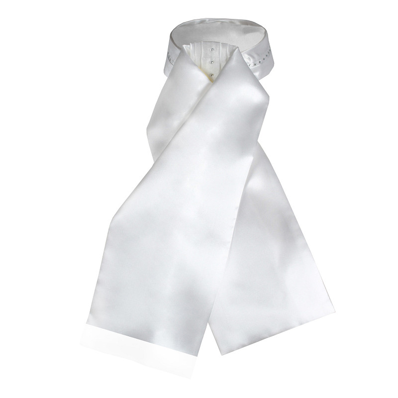 Elegantne satiinist vรตistluskaelus, mille krae on kaunistatud sรคdelevate kivikestega, lisades vรตistlusriietusele luksusliku ja pilkupรผรผdva ilme. Mugav takjakinnitus kukla taga vรตimaldab kaelust kiiresti ja lihtsalt kinnitada.