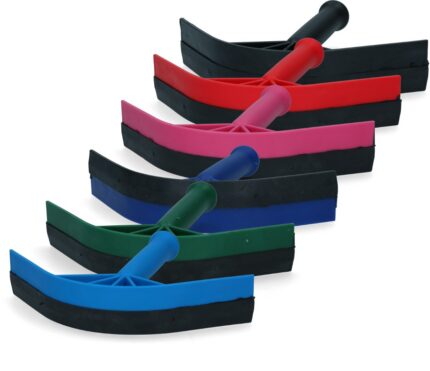 Plastic sweat scraper available in various colors. Dimensions: Length: 20 cm, Width: 21 cm