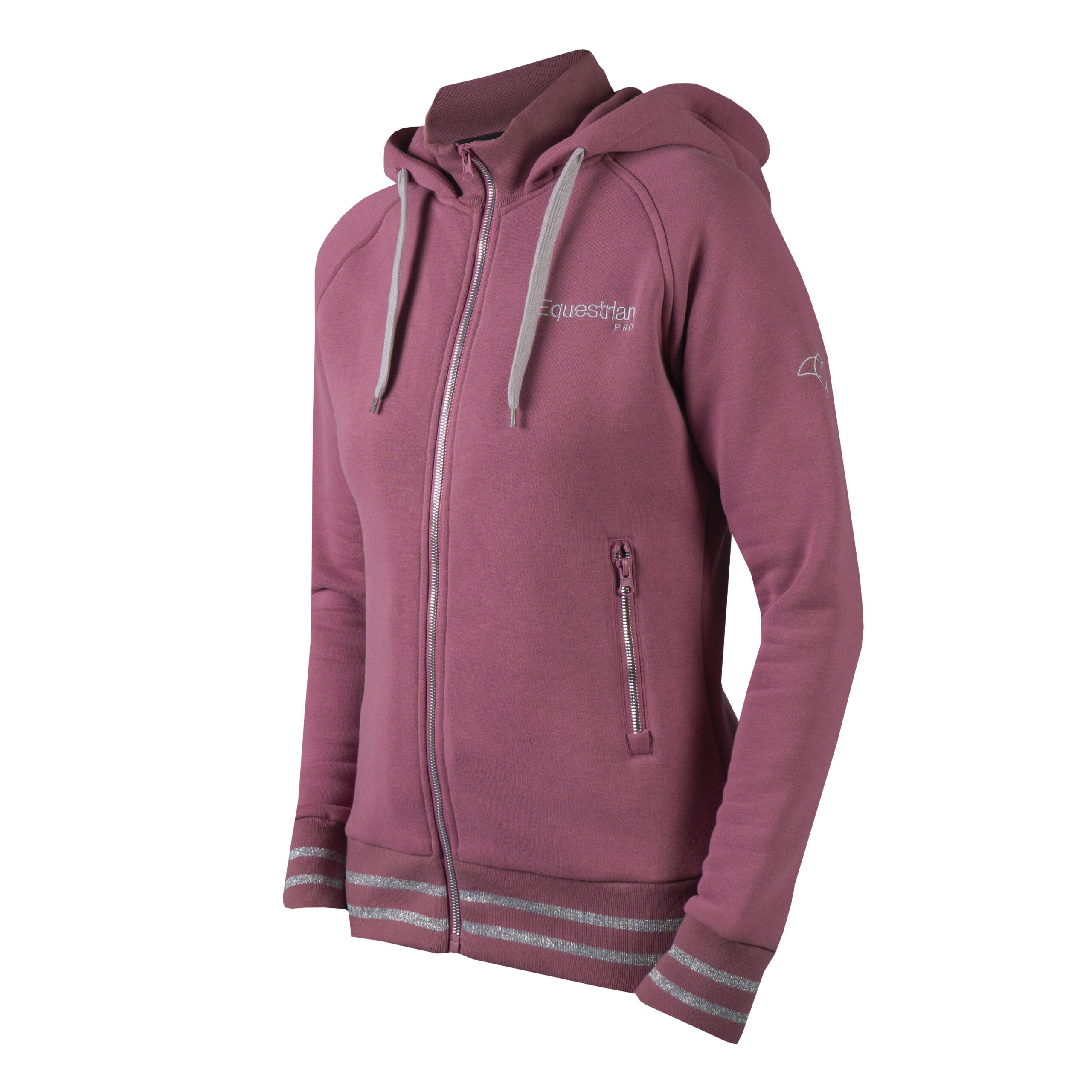 Comfortable and soft women’s vest with an extra stand-up collar on the inside. This vest has two side pockets with zippers. Product specifications: Hood with drawstring Extra stand-up collar on the inside Ribbed cuffs and hem Two side pockets with zippers Equestrian Pro Trinity artwork on chest and left upper arm Material: 50% cotton 50% polyester 320 gsm brushed inside: