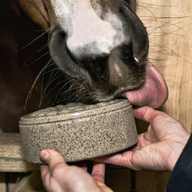 A natural feed supplement for horses and ponies, containing Himalayan salt and the organic volcanic clay mineral clinoptilolite-zeolite. This lick block provides a salty taste, supports mineral balance, and offers horses a natural and engaging activity in their daily environment.