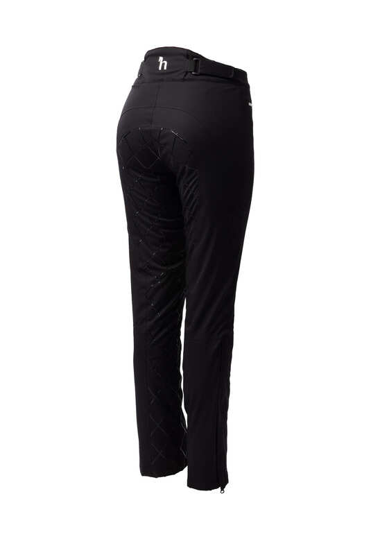 Get some added warmth with these stylish, comfortable padded women’s breeches with waterproof fabric. Technical silicone print at the seat provides extra grip in the saddle. A back high waist provides both a great fit and perfect shape. Front zipper pockets are perfect for storing keys or carrots.