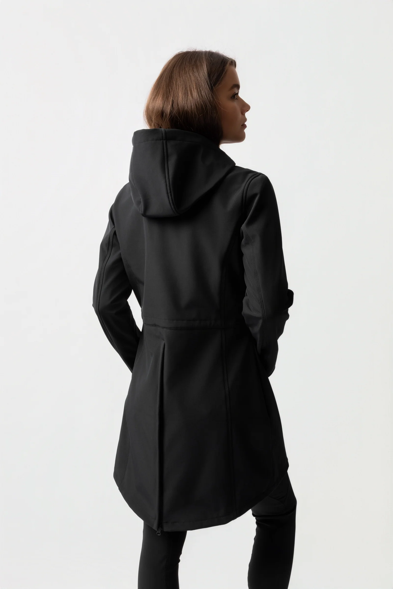 n n n n n n n HORZE Softshellist pikk ratsajakk ANNA n Stiilne ja mugav softshellist poolmantel, mis sobib kandmiseks igal aastaajal. See on loodud aktiivsele ratsanikule, pakkudes kaitset tuule ja kerge vihma eest ning jäädes samal ajal treeningu ajal meeldivalt hingavaks. n Vetthülgav softshellkangas aitab hoida mugavust erinevates ilmastikuoludes, samas kui naiselik kehajärgiv taljesse lõige loob ilusa silueti liikumist piiramata. Lukuga taskud pakuvad praktilist ruumi väiksematele vajalikele esemetele tallis või ratsutamisel. Elastsed varrukaotsad ja alläär aitavad jopel hästi istuda ning hoiavad soojust keha ligi. Tulemuseks on suurepärane tasakaal stiili, mugavuse ja praktilisuse vahel igapäevaseks ratsutamiseks. n Omadused: n n n Vetthülgav ja hingav softshellkangas n Teibitud õmblused puuduvad n Allääres tagaosa lõhik mugavamaks liikumiseks n Eemaldatav kapuuts n Lukuga taskud n Kaksipidikäiv lukk n Sobib ideaalselt igapäevaseks ratsutamiseks ja tallis kandmiseks n n Materjal: n n n 95% polüester n 5% elastaan n n Tehniline info: n n n Veepidavus: 3000 mm n Hingavus: 3000 MVP n n Hooldus: n n n Masinpestav õrna pesuprogrammiga 30 kraadi juures n Pesta pahupidi n Pesta sarnaste toonidega n Mitte kasutada pesupehmendajat n Mitte kuivatada kuivatis n n n n n A sleek softshell jacket that keeps you comfortable in every season. n n n n n n n n nThe Horze Anna Softshell Riding Jacket is designed with active riders in mind. Its water-repellent softshell fabric protects you from wind and light rain, while remaining breathable during training. The fitted cut offers a flattering silhouette without restricting movement. Practical zip pockets provide space for small essentials at the stable. Elastic cuffs and hem ensure a secure fit, keeping warmth in place. This jacket is the perfect balance of style, comfort, and practicality for everyday riding. n Features: n n Waterproof, breathable fabric n No taped seams n Opening slit at back hem n Removable hood n Zipper pockets n Two way zipper n n Technical Decription: n95% polyester, 5% elastane, 3000mm waterproof, 3000mvp breathable. n Washing Instruction: nMachine wash gentle 30 degrees, wash inside out, wash with similar colours, do not use fabric softener, do not tumble dry n n