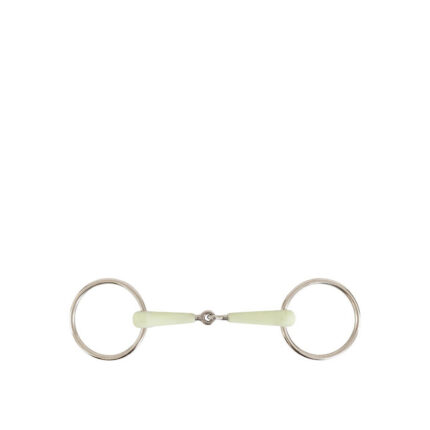A young horse will find this simple, straight bit, made of synthetic rubber, a delightful first bit. This bit is suitable for riding and in-hand work. It is a commonly used bit for jumping and hacking. The apple-flavored rubber makes it easily accepted by most horses. Stainless steel contains nickel.