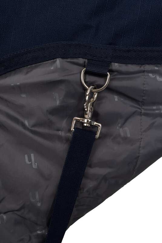 This Avalanche turnout rug has a high neck for extra warmth, and is padded with 150g. High gussets do not restrict your horse’s movement. X-surcingles, two front buckles and elastic leg straps keep this rug in place. The big tail flap adds protection. Also available without filling and with fleece lining (#24017).