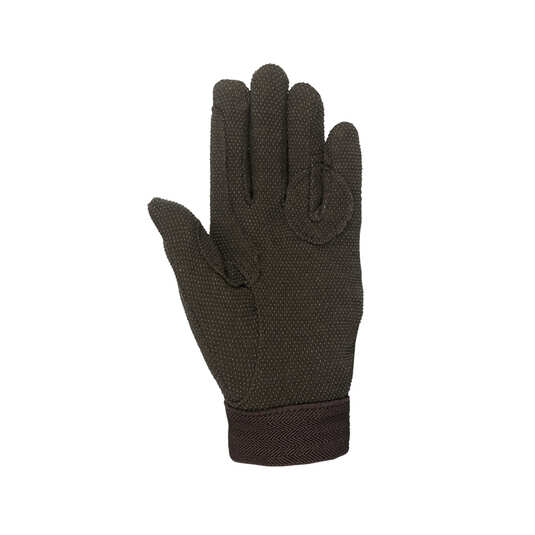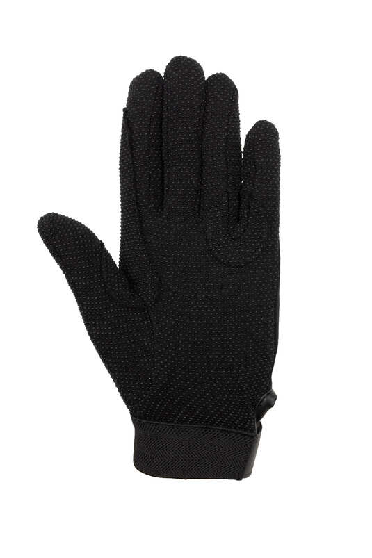 The sophisticated look of this glove is combined with cotton backing and a lightweight grip. These gloves feature rubber stubble on the palm and fingers for a better grip on reins. Use them for riding and working around the barn. The uses are endless. Hook-and-loop fastener on the wrist features the Horze โZโ logo and provides an adjustable fit.