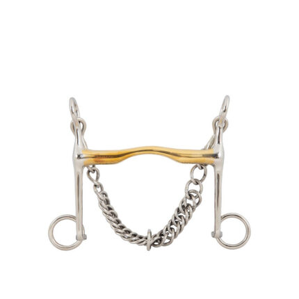 The German Silver Weymouth has a mouthpiece that is slightly curved forward and upward. Horses with flat pronounced bars will be happier and more comfortable with this revolutionary mouthpiece. The port cannot touch the bars therefore there is pressure on this sensitive area. The bit cheeks and curb chain hooks will not chafe.