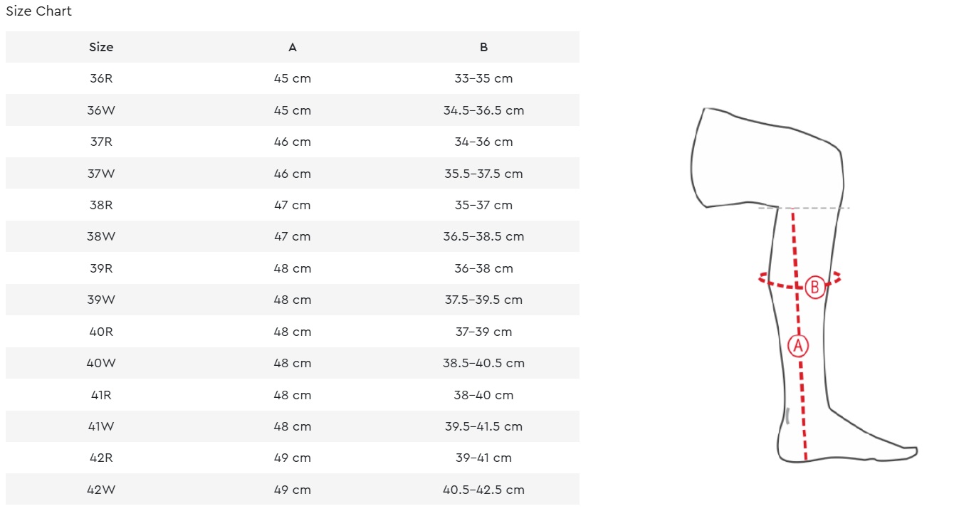- Calf widths: regular, wide