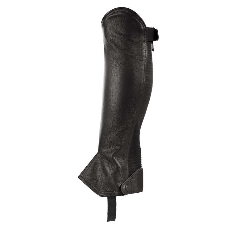 Protect your legs and ride in style with these classic half chaps in comfortable leather with a sturdy zipper at the back. Elastic ensures a snug fit. This well-priced pair will stand up to daily use.