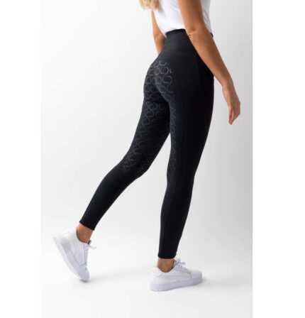 These full seat riding tights offer ultimate comfort and grip for daily riding. The silicone-printed full grip seat ensures excellent stability in the saddle. Made from a breathable, stretchable fabric, they provide maximum freedom of movement. The comfortable elastic waistband offers a snug fit without pressure. Practical thigh pockets add convenience, and the 70 cm inseam in all sizes ensures a perfect length.