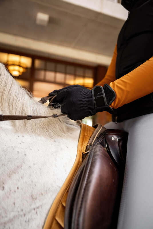 The perfect fit of these schooling or show gloves is ideal for good grip. The stretch fabric keeps hands safe and comfortable.