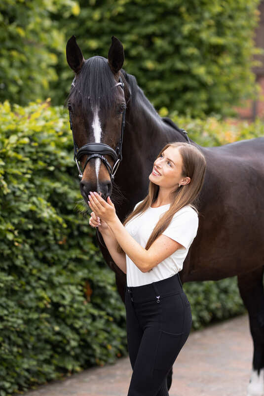 Somerset valjad on anatoomilise lรตikega ning pehmendusega nii kapsli kui ka kuklarihma juures, pakkudes hobusele maksimaalset mugavust. U-kujuline otsmikurihm valgete sรคdelevate kivikestega lisab elegantse ilme. Tรคnu praktilistele trukkidele on otsmikurihma lihtne soovi korral vรคlja vahetada. Metallist kinnitused sobituvad ideaalselt kokku nappa-naha luksusliku viimistlusega.