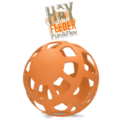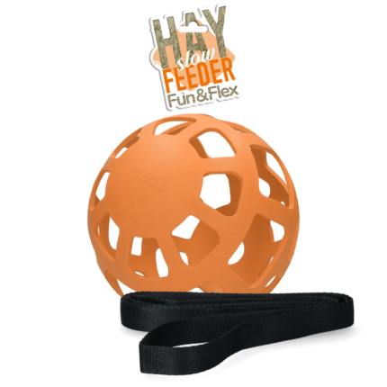 The Jolly Hay Ball is easy to suspend in the stable, pasture or trailer.