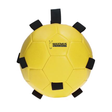 Interactive treat ball for horses, made of flexible rubber.