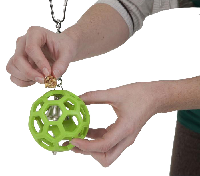 JW Hol-ee Roller For Birds provides stimulation and exercise for your pet parrot by making him work for his treats. This 100% rubber toy prevents boredom and destructive behavior. Attaches to cage wire with tough metal chain. Stuff with paper, non-perishable treats, wood. A favorite for birds of all sizes!