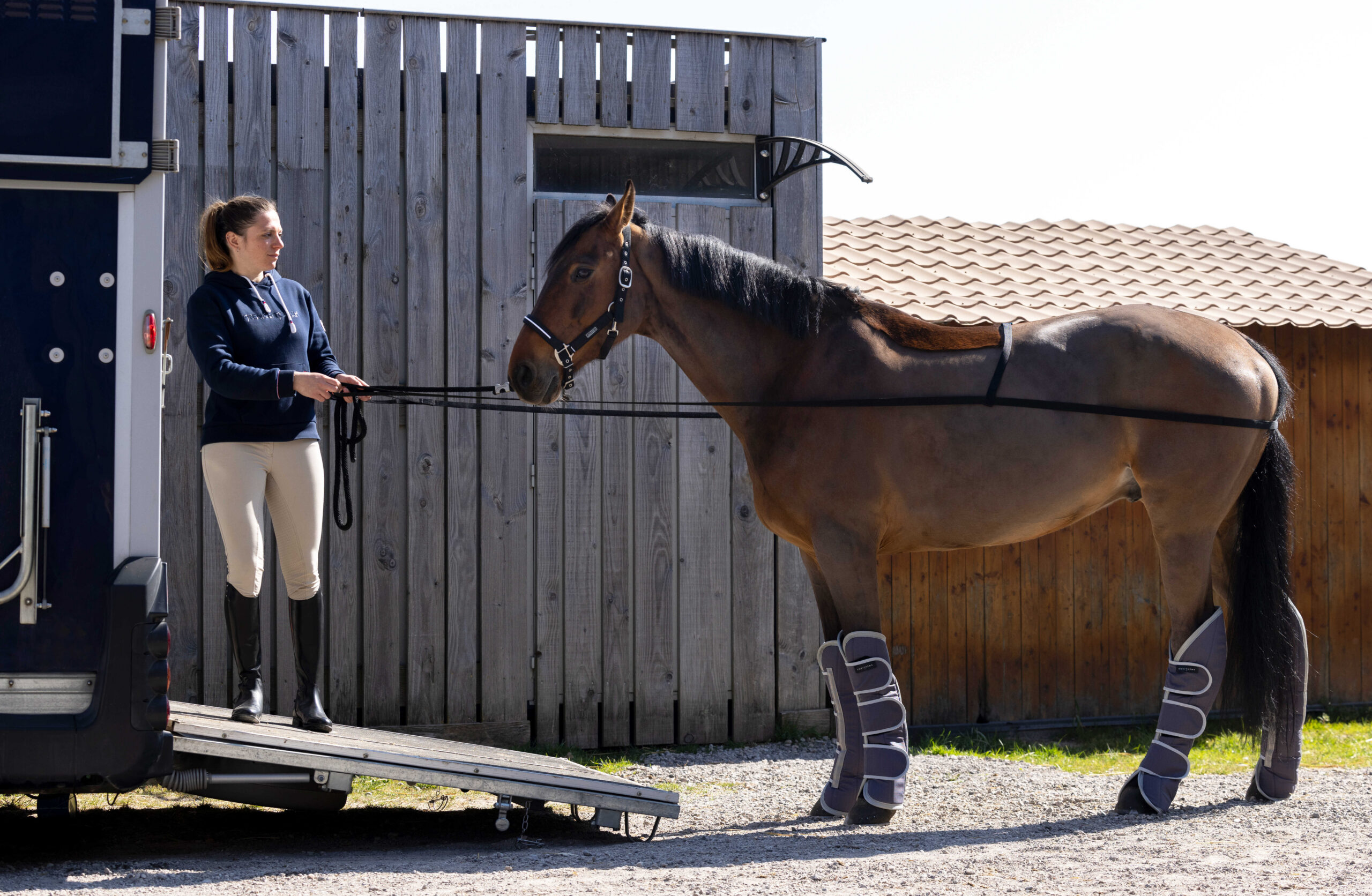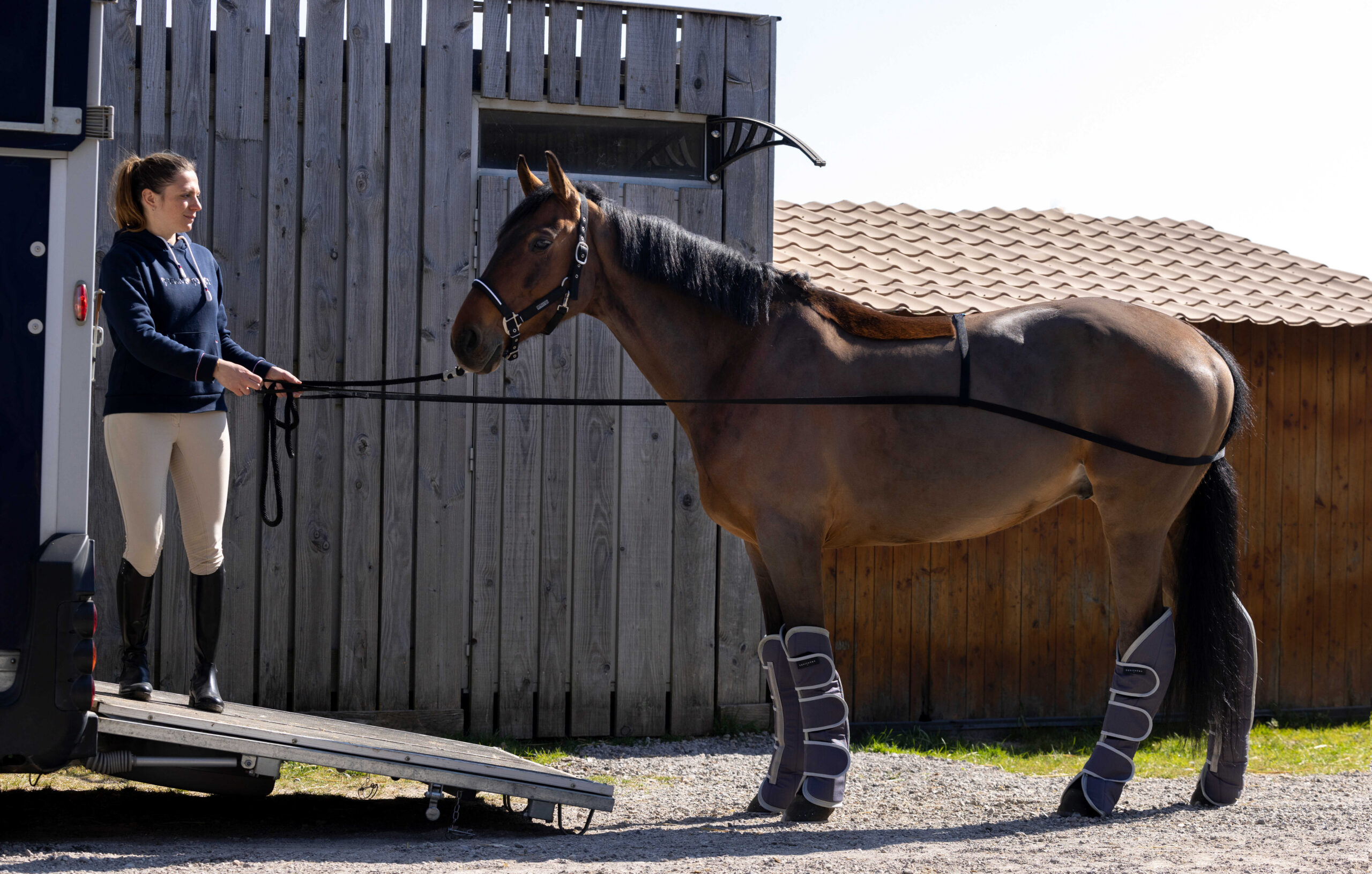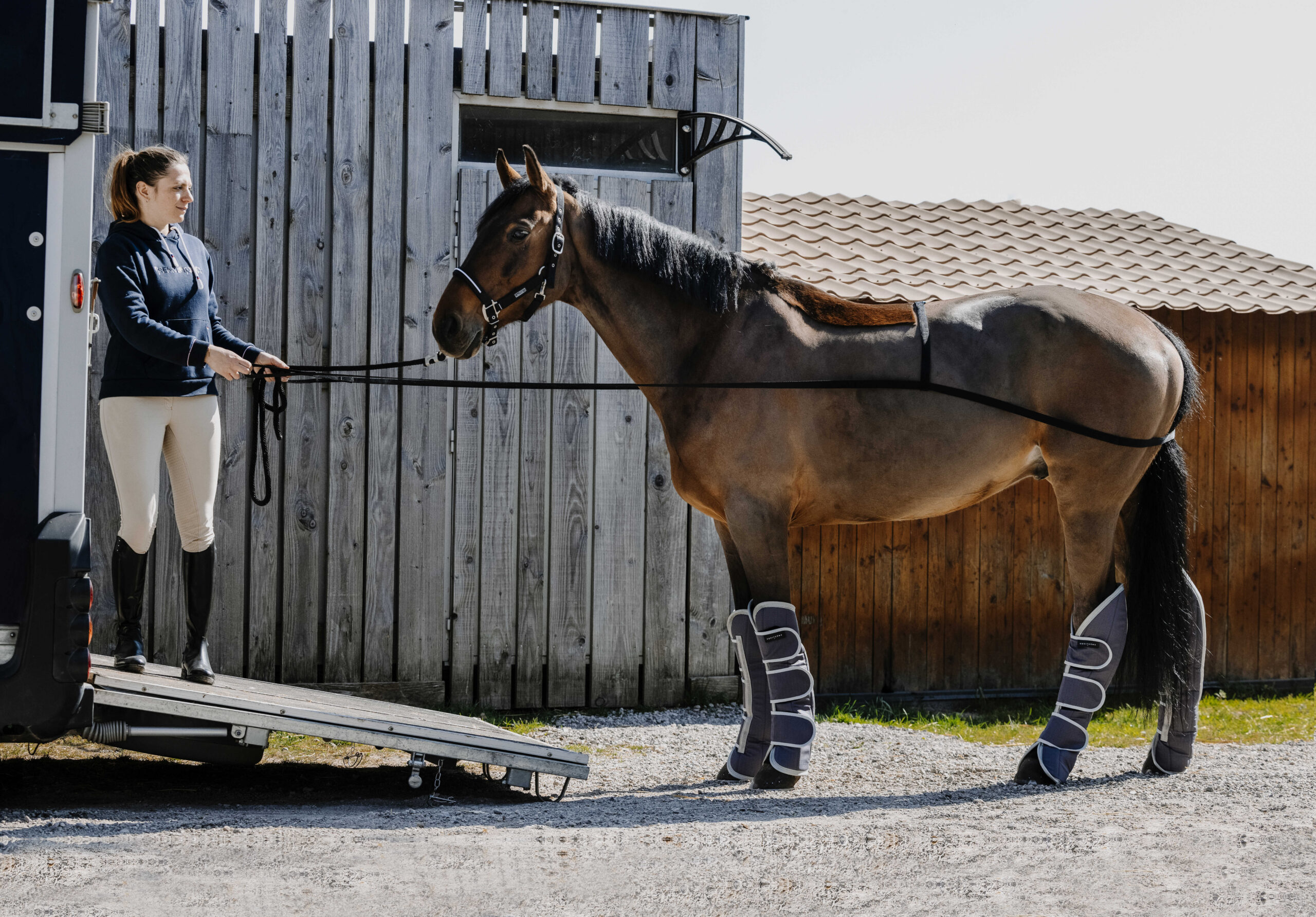 Training aid for loading a horse.