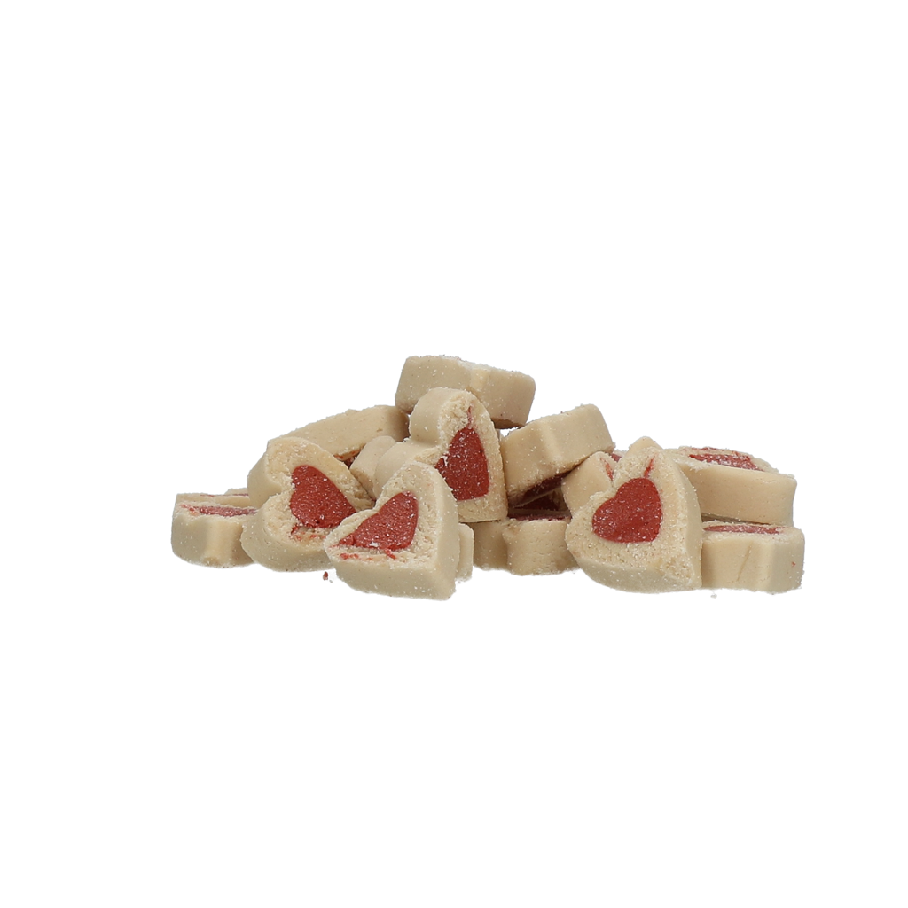 All you need is love! And all dogs love this surf and turf snack! This trainer-snack is filled with delicious meat and salmon and is a semi-moist soft reward. This means that these snacks are still slightly moist and therefore extremely powerful in taste and smell. That is why this is the ideal snack for dog trainers and dog parents, in order to reward their dog and puppy for their good behaviour during trainings. These trainer snacks do not contain added sugars and most of all; they were made in the Netherlands!