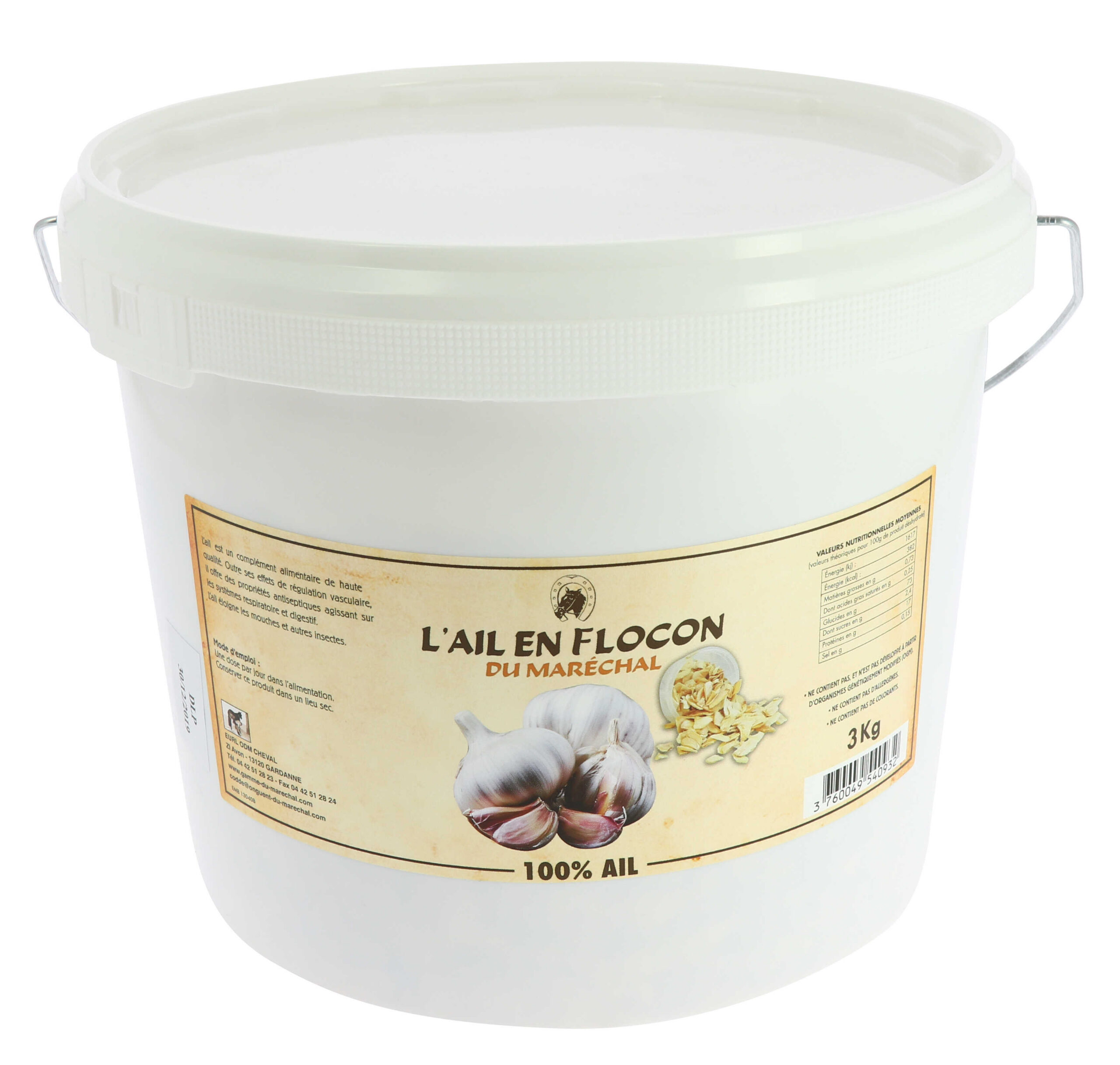 Dehydrated garlic flakes, carbohydrates: 20%, protein: 5%, fat: 1%.