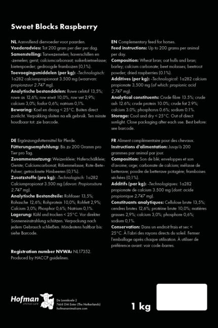 – Feeding instructions: Feed up to 200 g per horse per day.