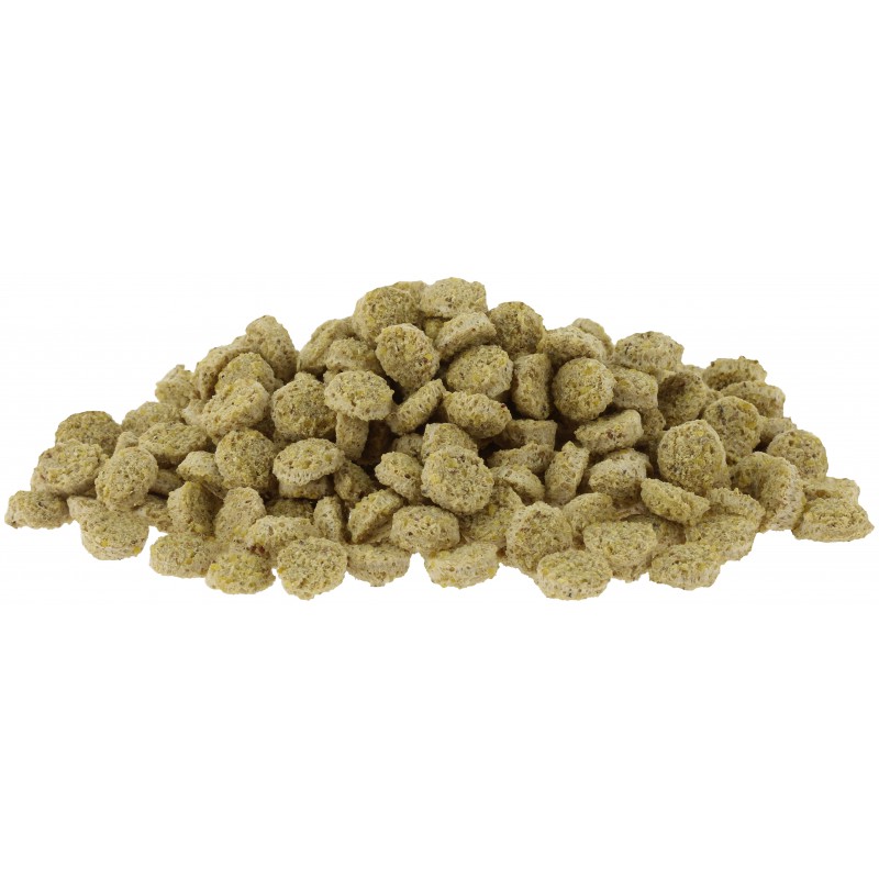 Mais, รตunapressijรครคgid (3%), tรถรถtlemata rapsiรตli, kaltsiumkarbonaat, banaanijahu (1%), naatriumkloriid, kuivatatud รตunatรผkid (0,1%)