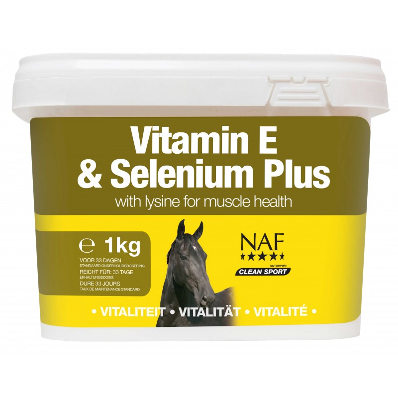 NAF Vitamin E & Selenium Plus รผhendab endas E-vitamiini, seleeni ja lรผsiini, pakkudes hobustele olulist tuge lihaste funktsioonile, ainevahetusele ja รผldisele sooritusvรตimele.
