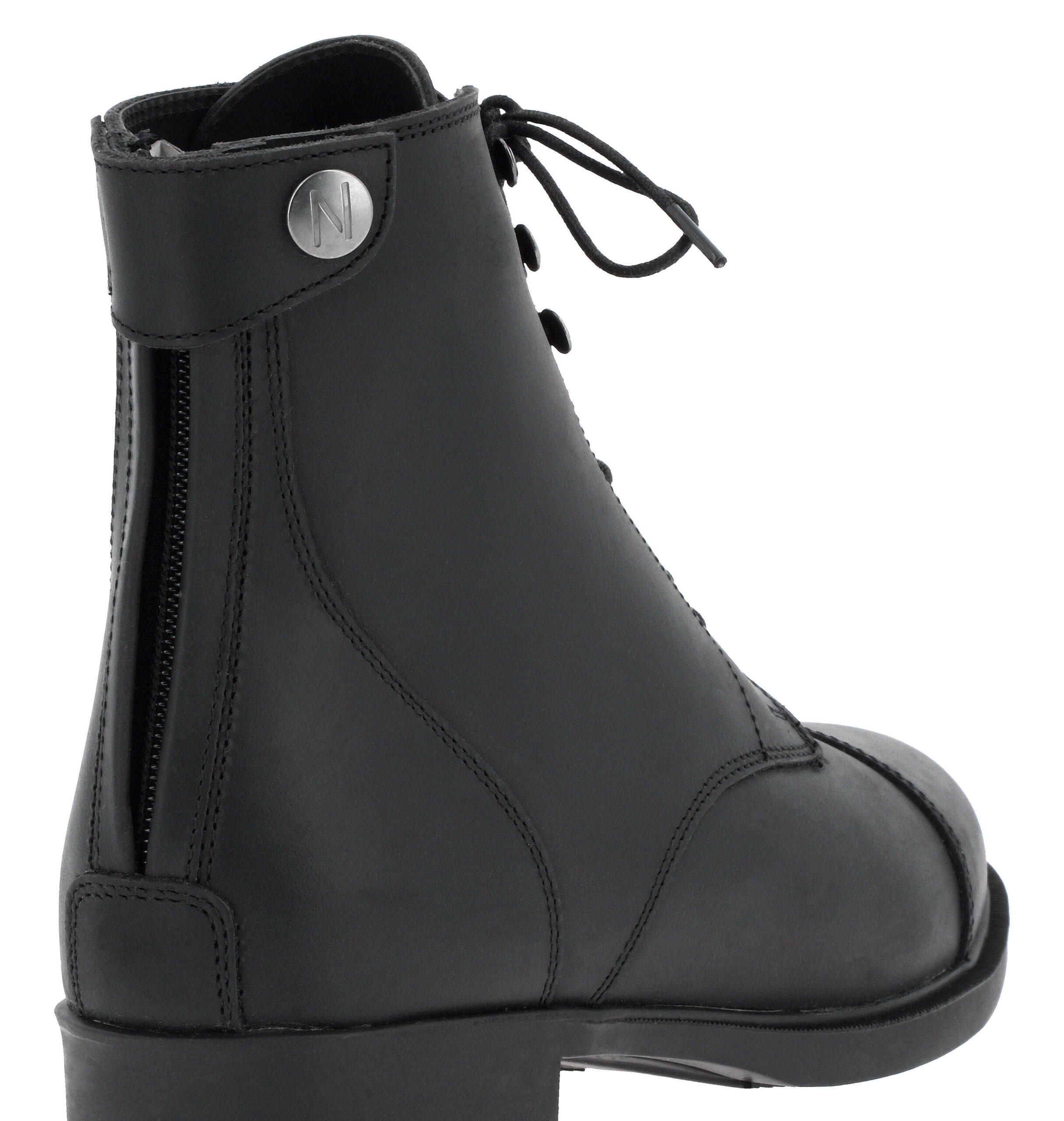 Optimized durability and comfort for these zip and lace-up paddock boots. – Breathability: Mesh lining ensures proper ventilation. – Durability: Oiled leather, sturdy and comfortable for long-term use. – Enhanced grip: Rubber sole for better traction and optimal stability. – Flexibility & longevity: Blake-stitched construction for increased durability and a premium finish. DETAILS: – Comfortable and flexible for daily use. – Elegant design, suitable for both riding and everyday wear. – High-quality materials for maximum longevity. COMPOSITION: Oiled leather, breathable mesh, rubber.