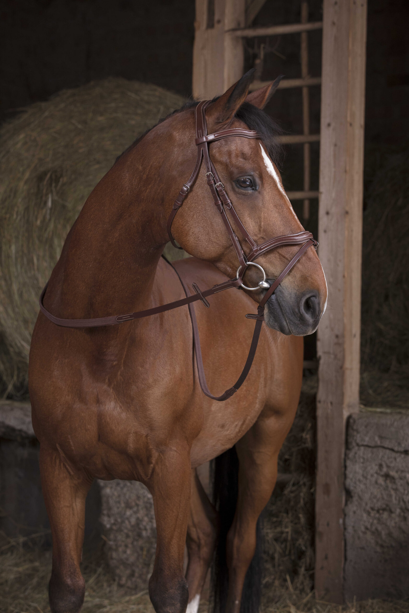 Buffalo leather reins with rubber grips, 19 mm wide with large studs. Stainless steel buckle.