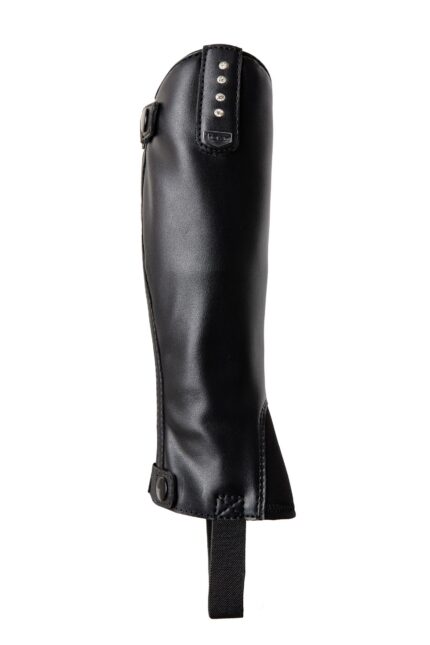 Synthetic mini chaps with a beautiful leather look and a touch of shine.