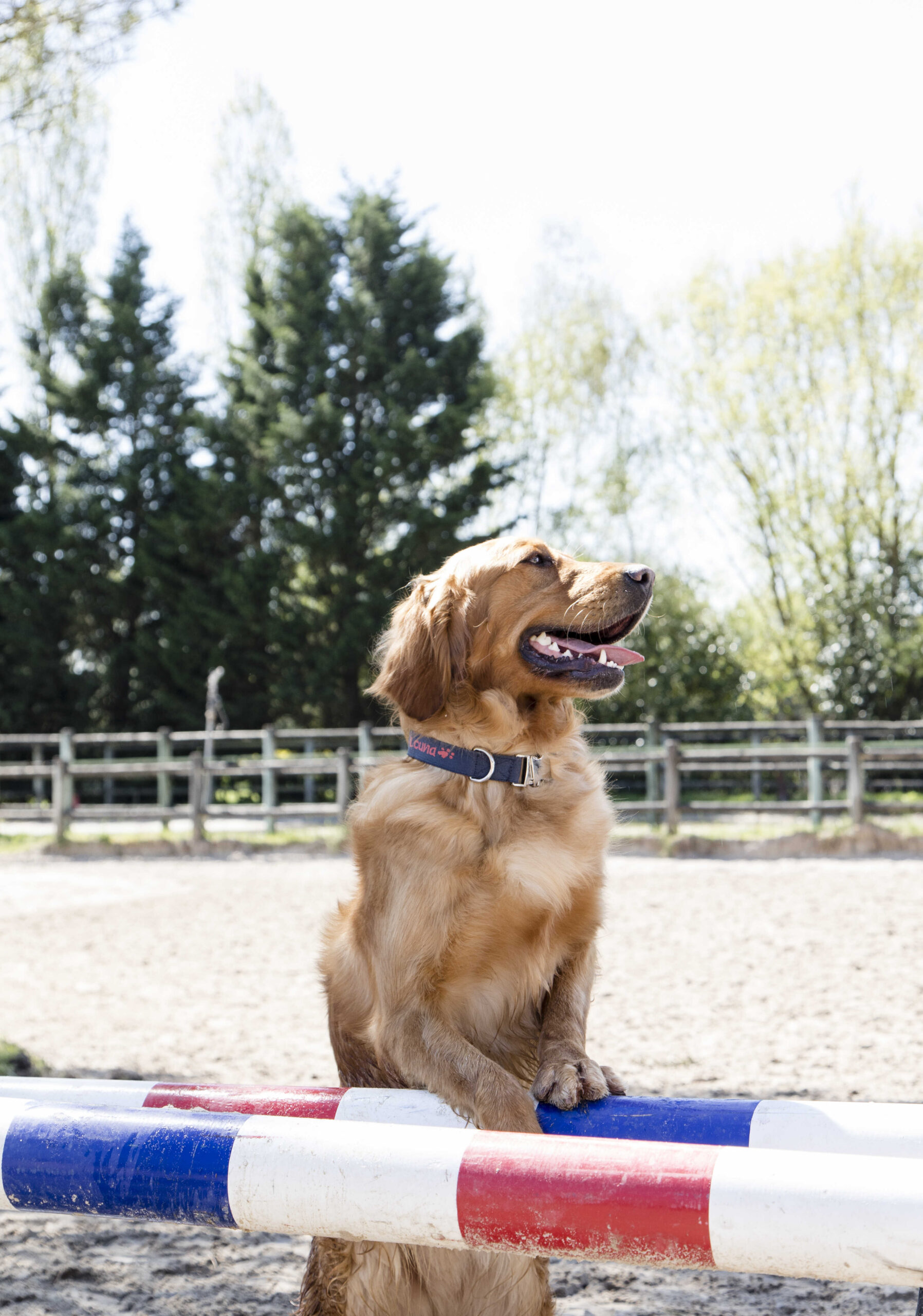 Nylon dog collar with adjustable loop, clip closure, and ring. Buckles, clip closure, and ring made of zinc with a stainless steel coating.