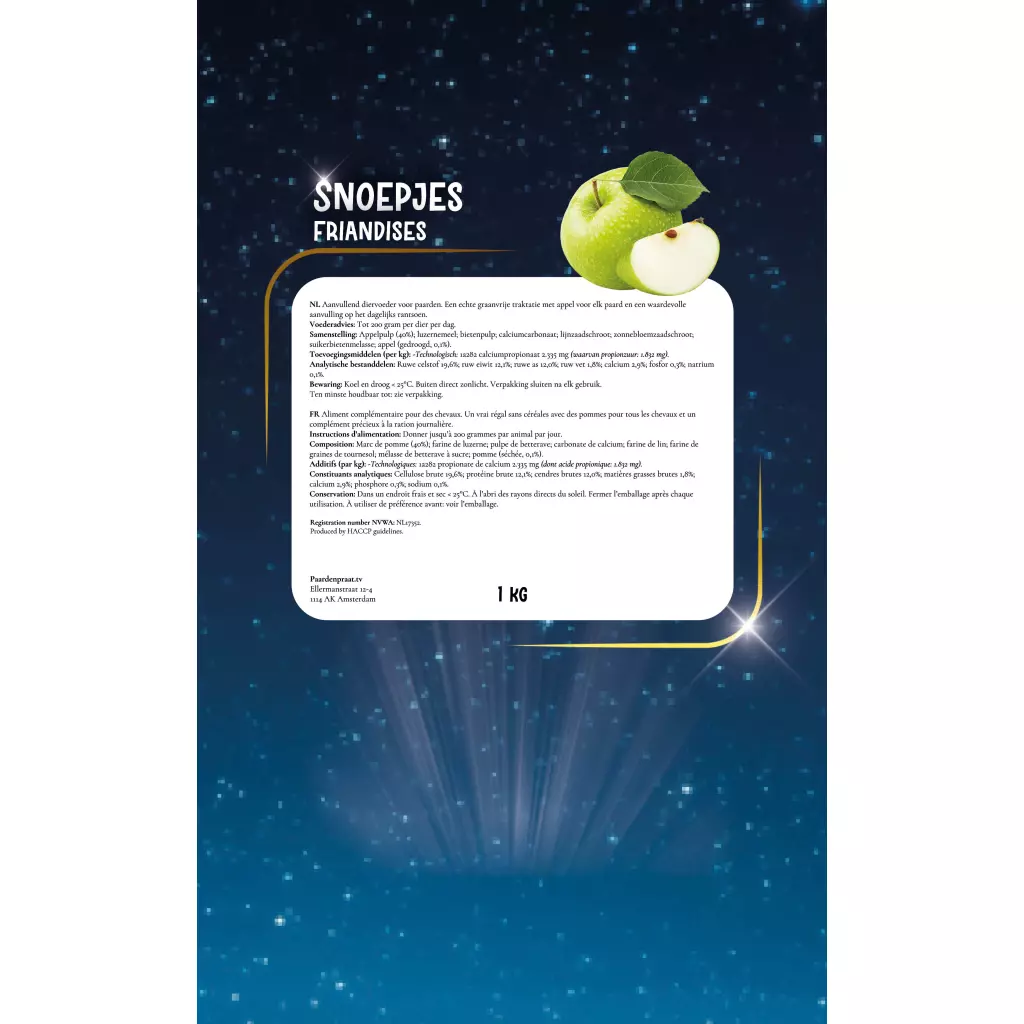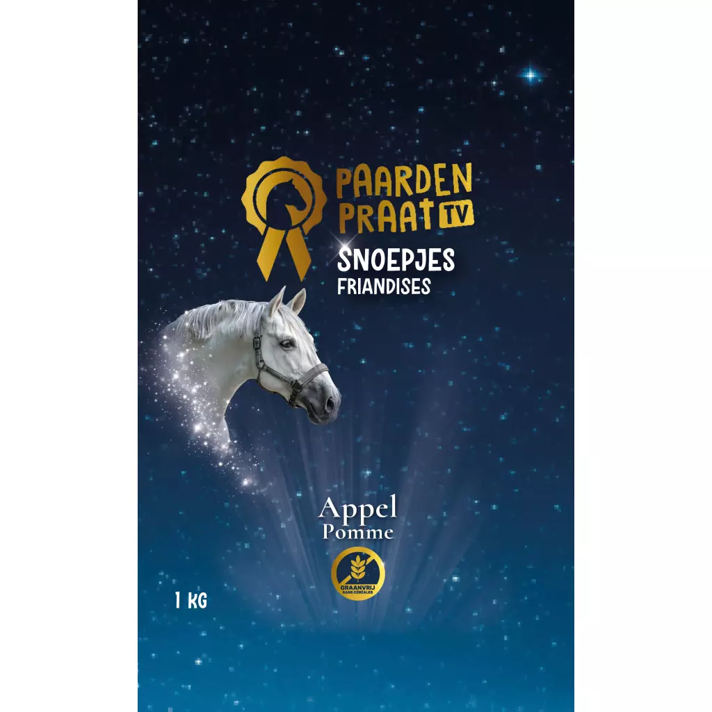 The Paardenpraat TV Sweets with apple are the perfect reward after an outdoor ride, while training or just because your horse deserves it. A real grain free treat for every horse and a valuable addition to the daily ration.