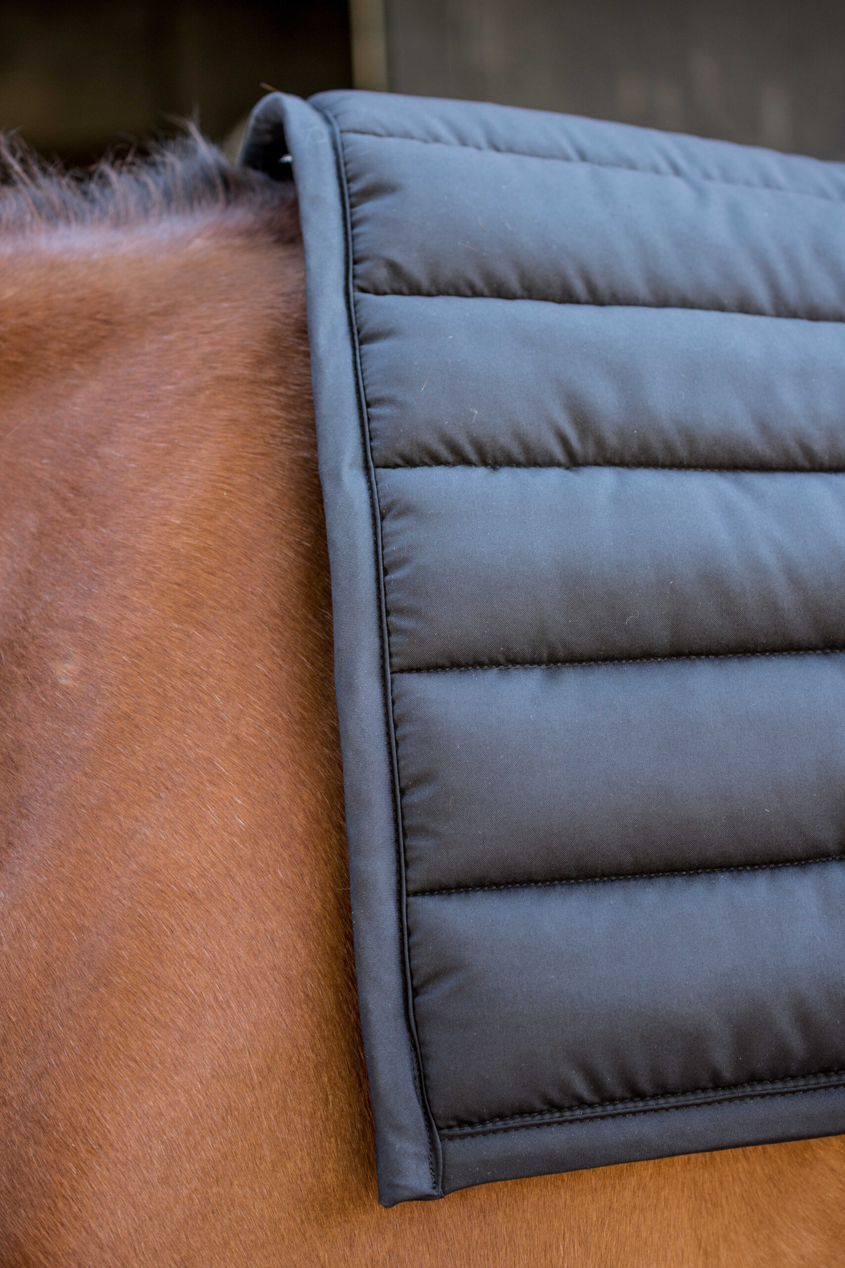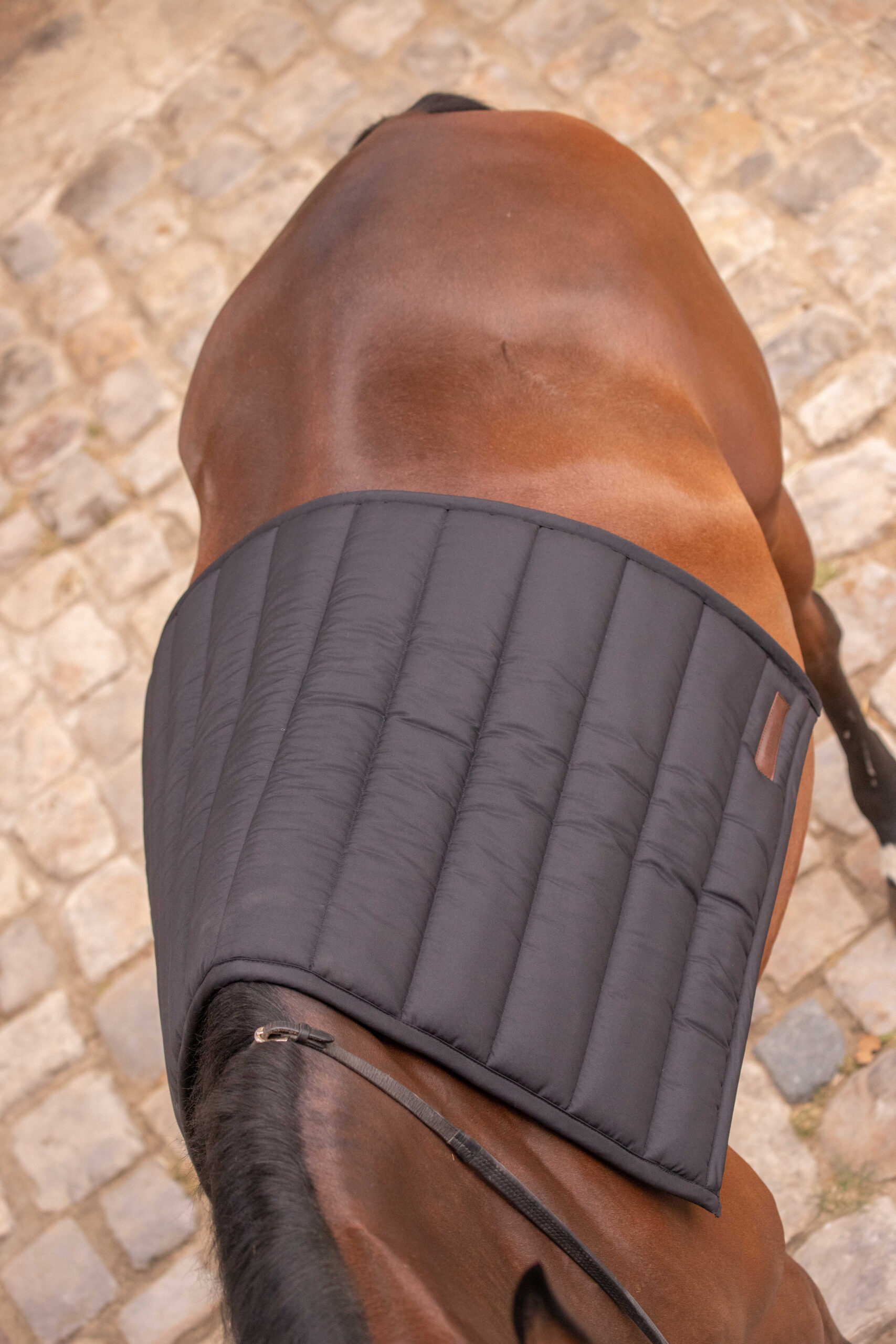 The Big Pad saddle pad is thick, with horizontal quilting and a small faux leather stripe bearing the Paddock Sports logo. It is lined with a black honeycomb pattern to effectively absorb sweat during work, with a straight back line. Composition: 100% Polyester Dimensions: 65 x 110 cm Machine wash at 30 degrees Celsius – Do not tumble dry