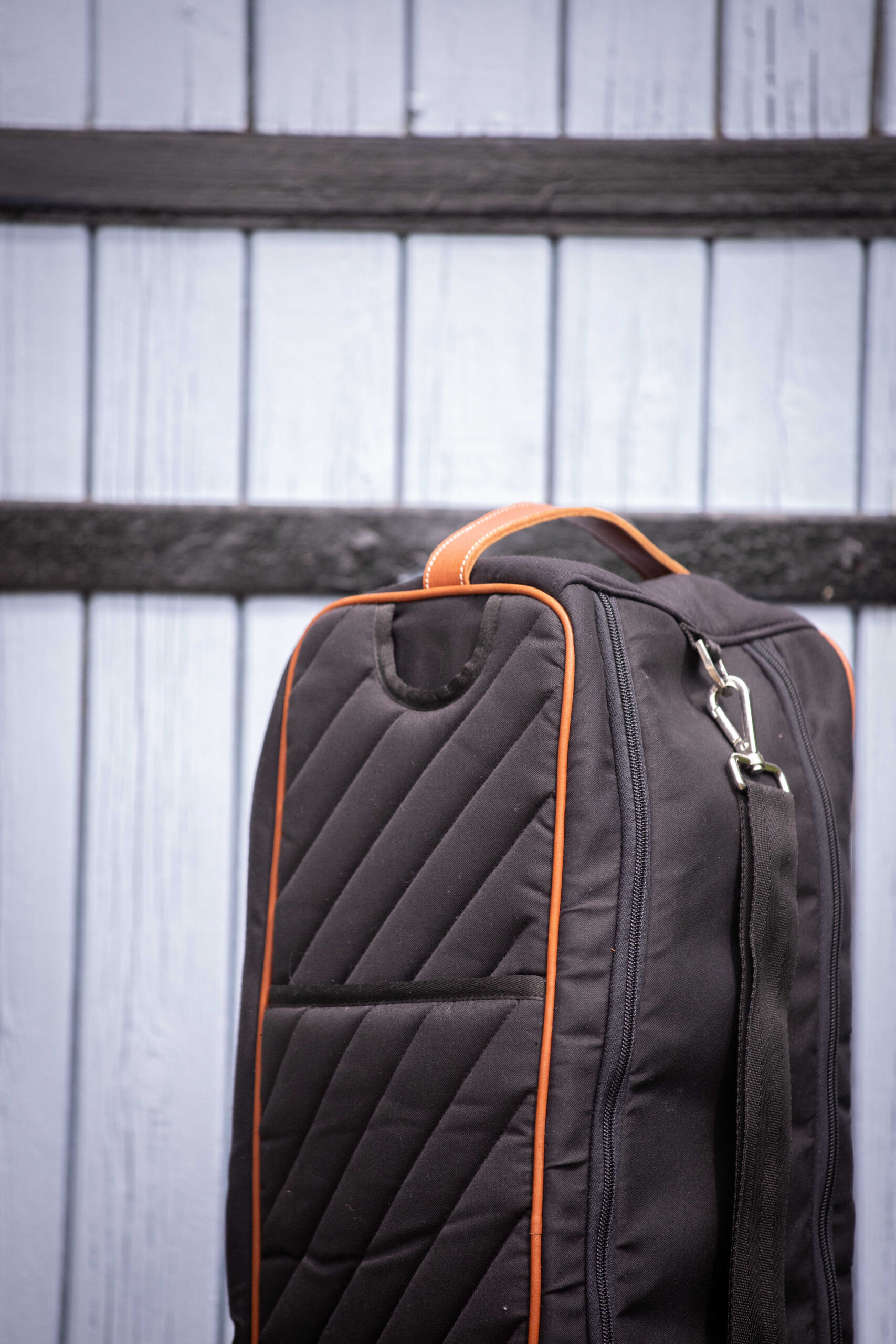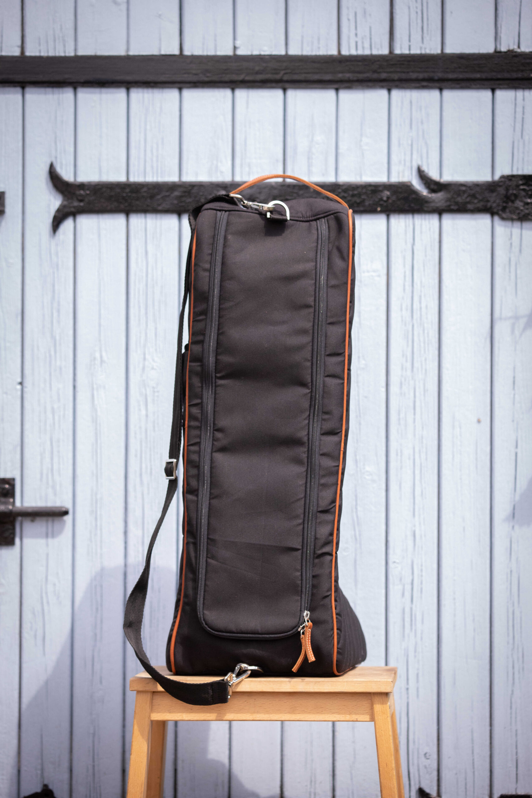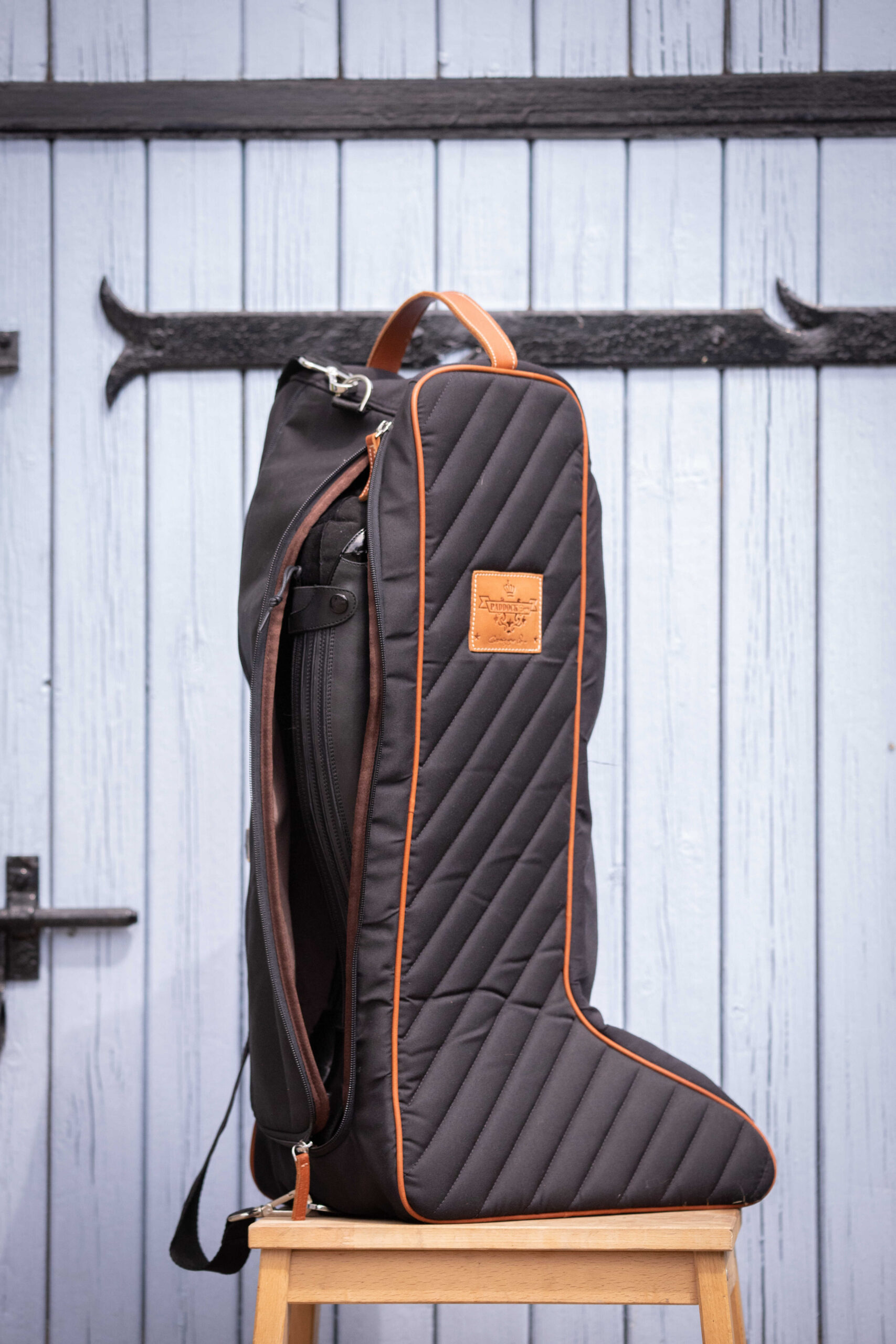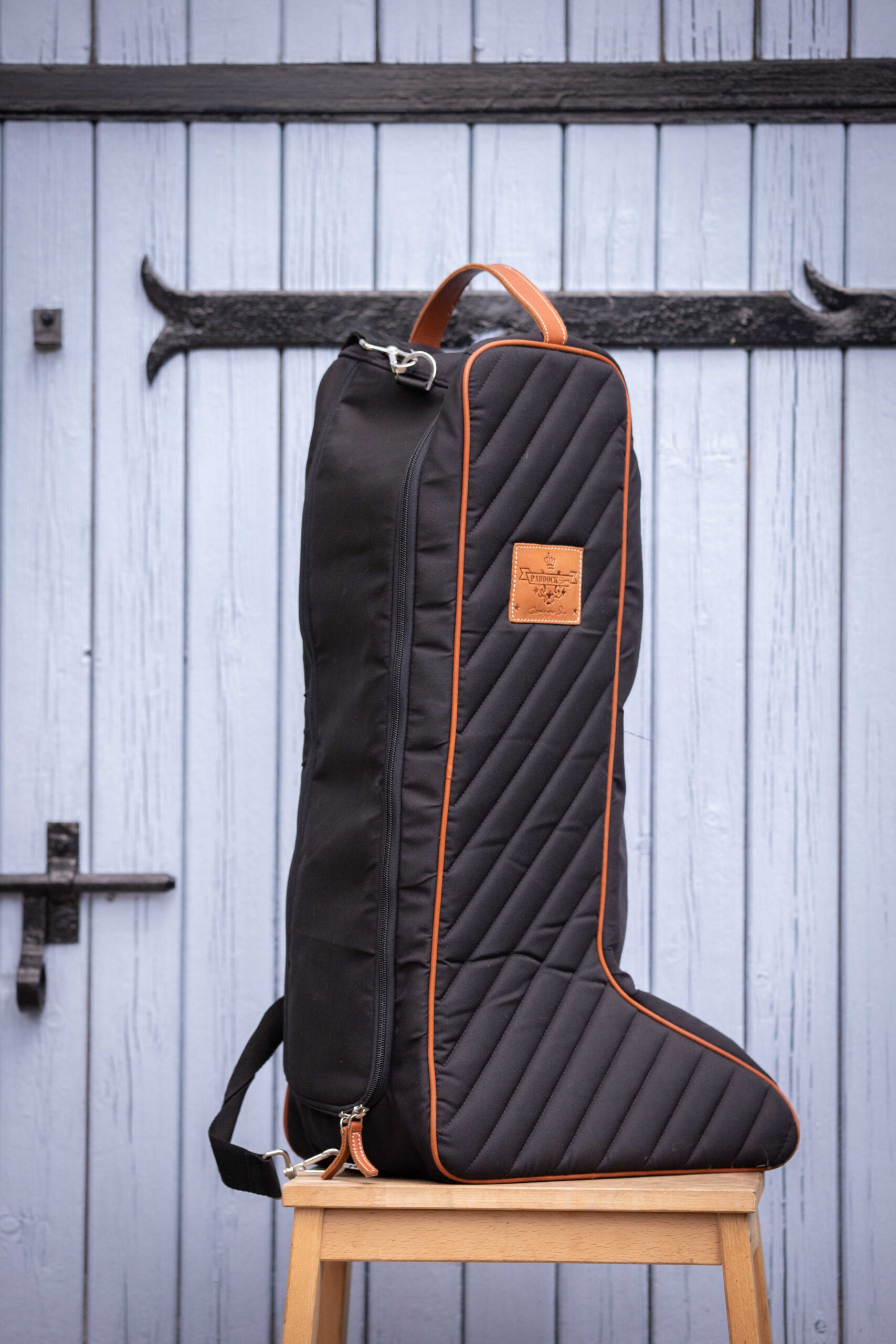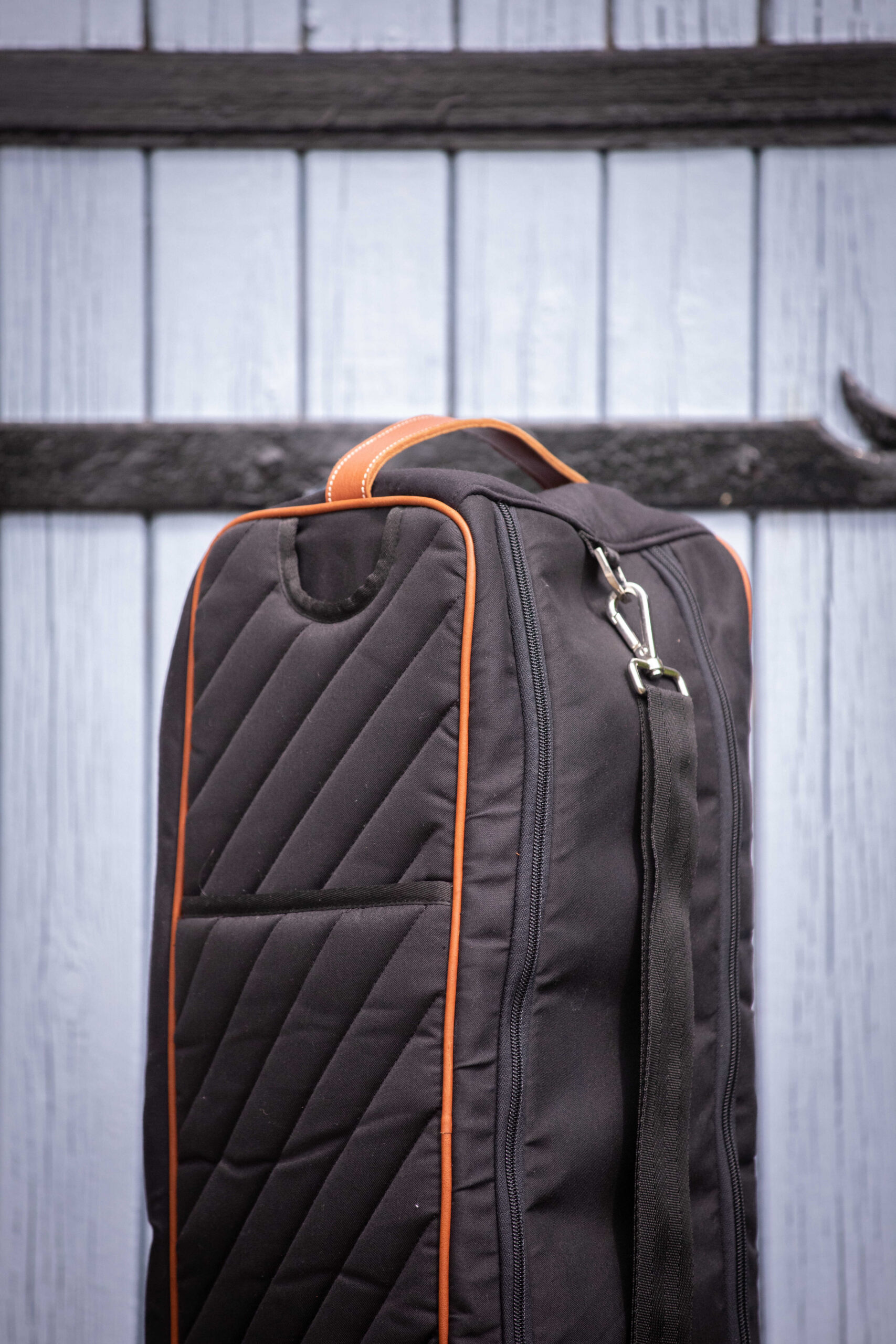 This practical bag is perfect for easily storing riders’ boots and protecting them from dust. It closes with a matching zipper. Its diagonal quilting coordinates with many other pieces from the same collection, such as the helmet bag, weekend bag, curtain, door front, or even the head guard. It also features a large, adjustable shoulder strap that allows it to be hung anywhere and easily transported. Composition: 100% polyester and cowhide. One Size fits all.