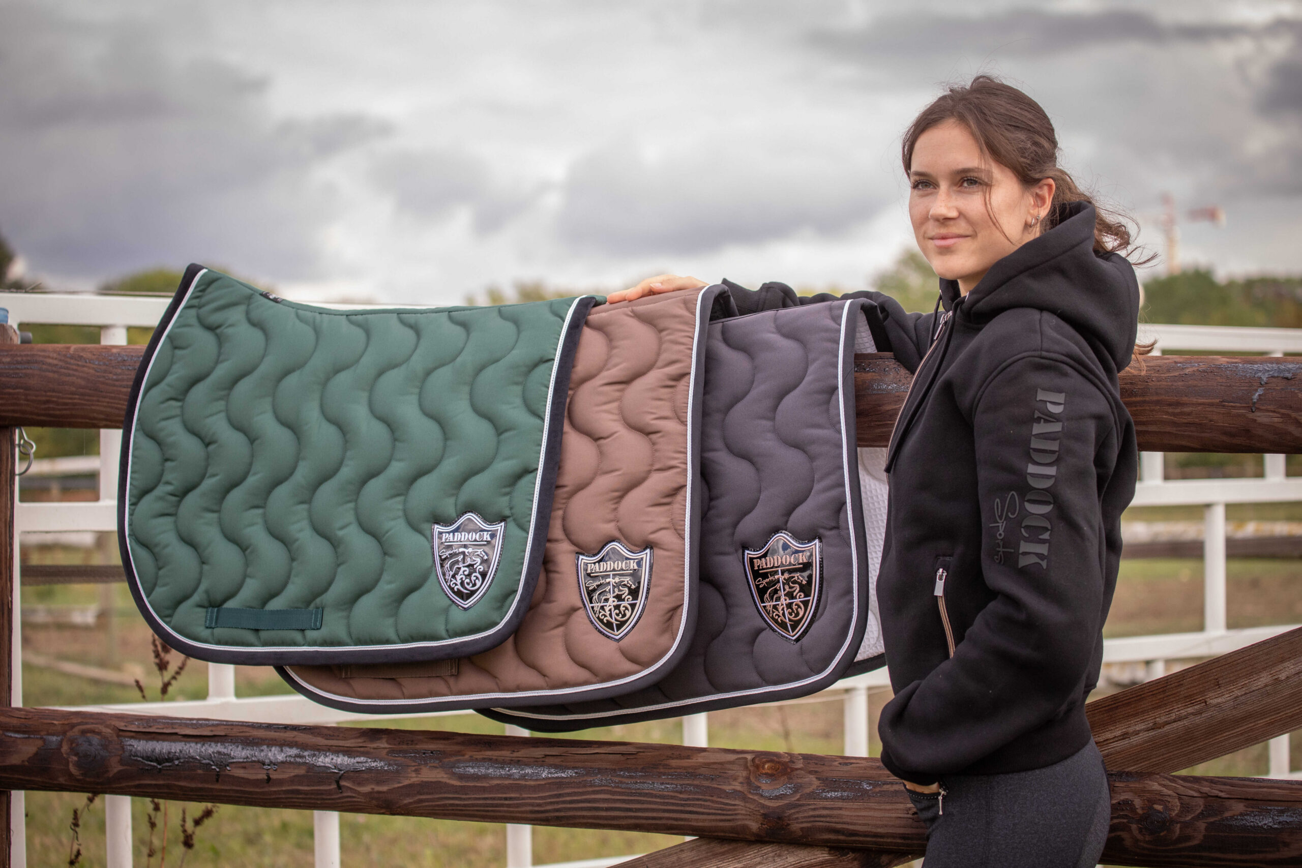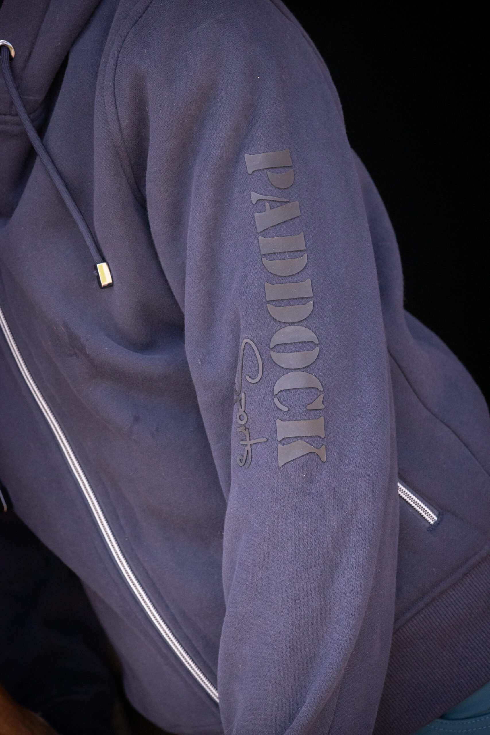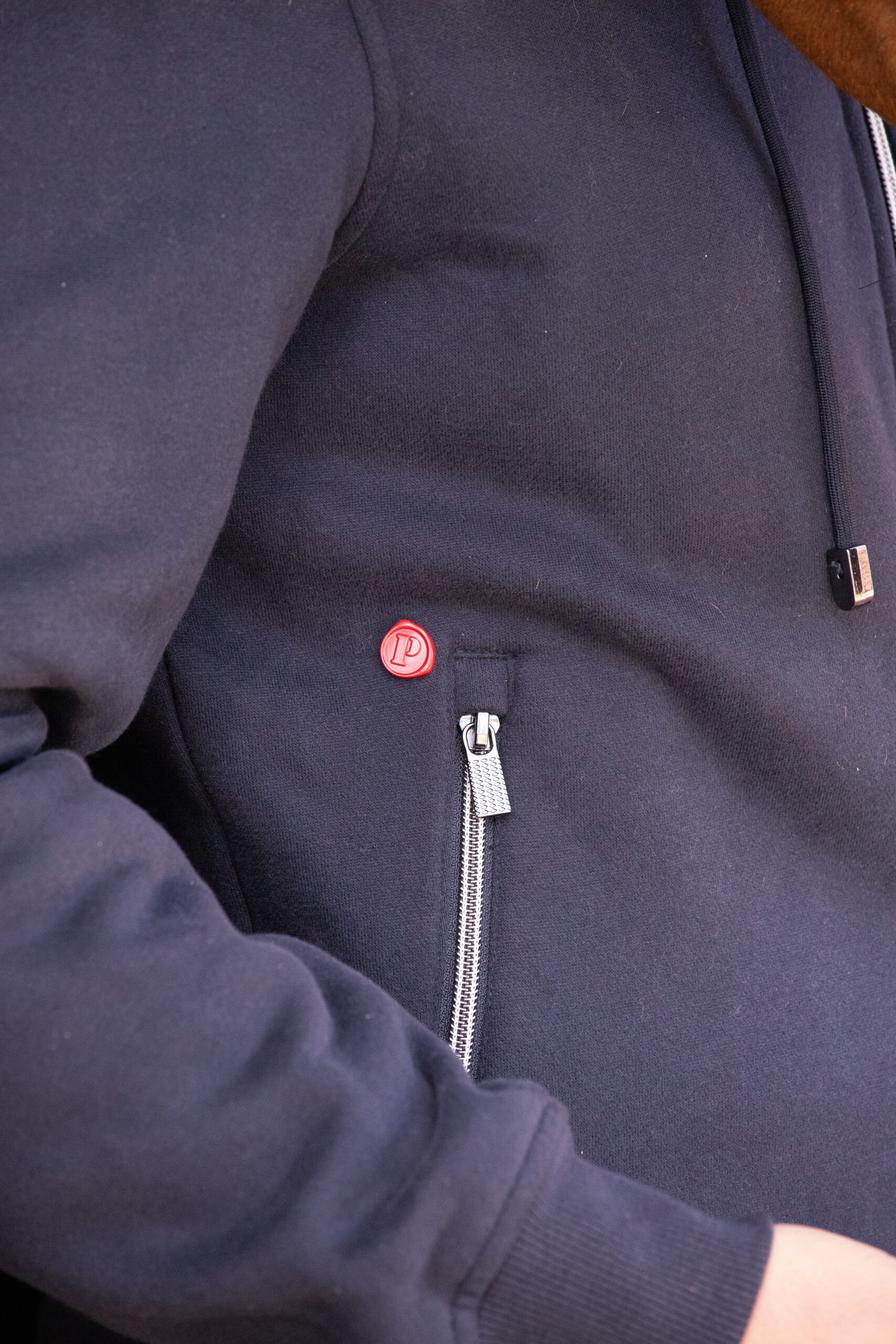 The Montebello sweatshirt features a front zipper and a hood, as well as two front zippered pockets. This sportswear garment is marked with “Paddock Sports” in matte, tone-on-tone silicone along the left sleeve. A similar Paddock marking is located on the back of the jacket, on the right shoulder. In the corner of the right pocket, there is a small, round, red mark, like a seal, marked with a P. This is a unisex sweatshirt, available in Sizes XXS to XXL in navy blue or black. Composition: 51% polyester and 49% cotton. Size guide: The Montebello sweatshirt has a unisex fit and is suitable for both women and men. For those between two Sizes, it is recommended to choose a Size smaller than their usual Size. Washing instructions: This product is machine washable at 30°C; however, tumble drying is not recommended.