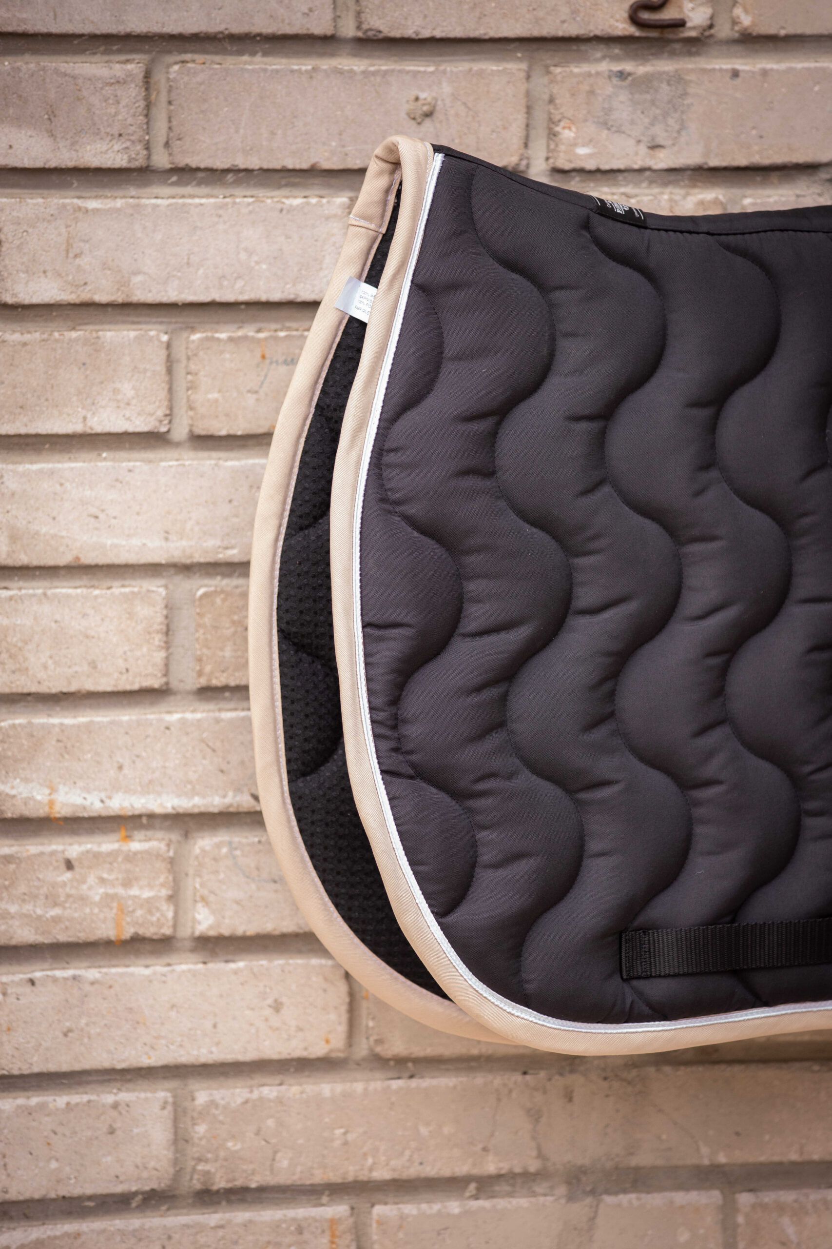 Made in France, this saddle pad is lined with honeycomb fabric. Vertical wave quilting. The anatomical shape offers plenty of wither clearance. Girth openings on both sides of the saddle pad. The two-layer foam and honeycomb lining ensure high sweat absorption. Tone-on-tone badges on the left side match the base color.