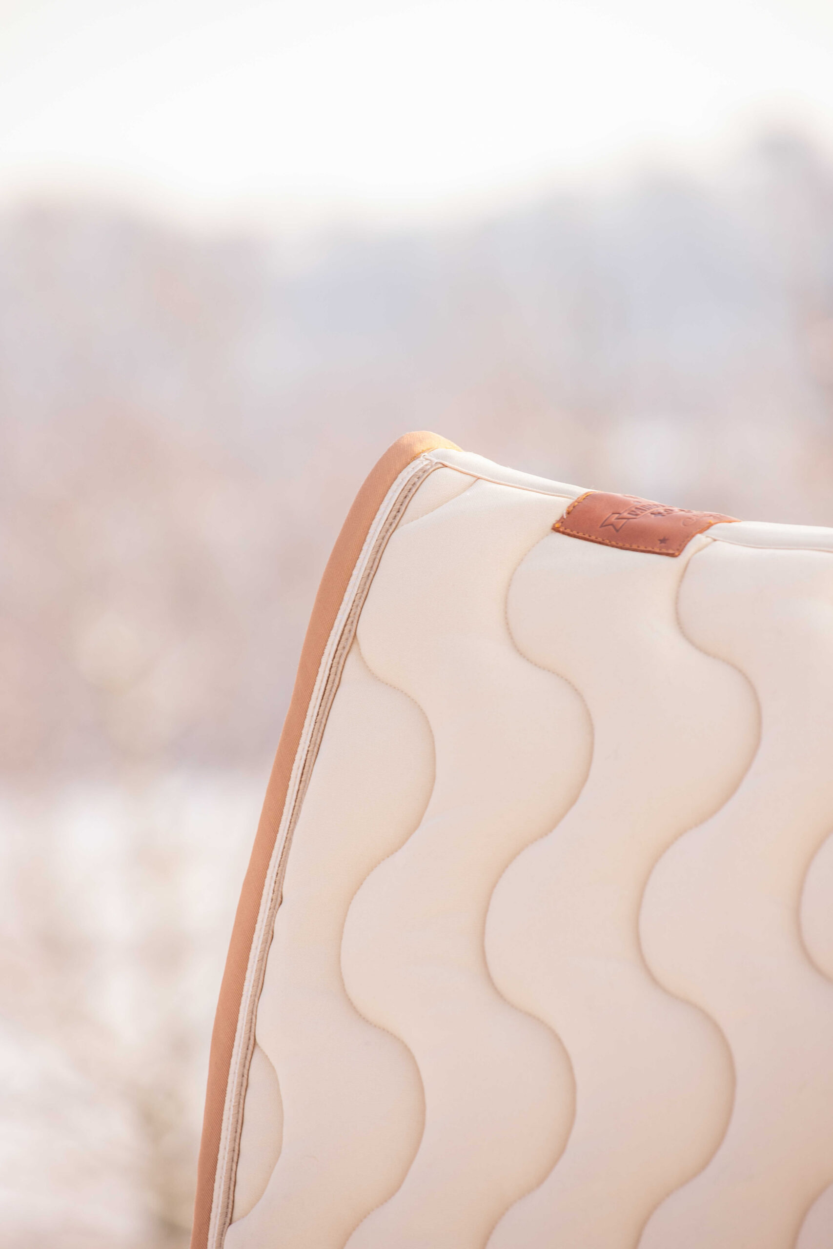 Made in France, this saddle pad is lined with honeycomb fabric. Vertical wave quilting. The anatomical shape offers plenty of wither clearance. Girth openings on both sides of the saddle pad. The two-layer foam and honeycomb lining ensure high sweat absorption. Tone-on-tone badges on the left side match the base color.