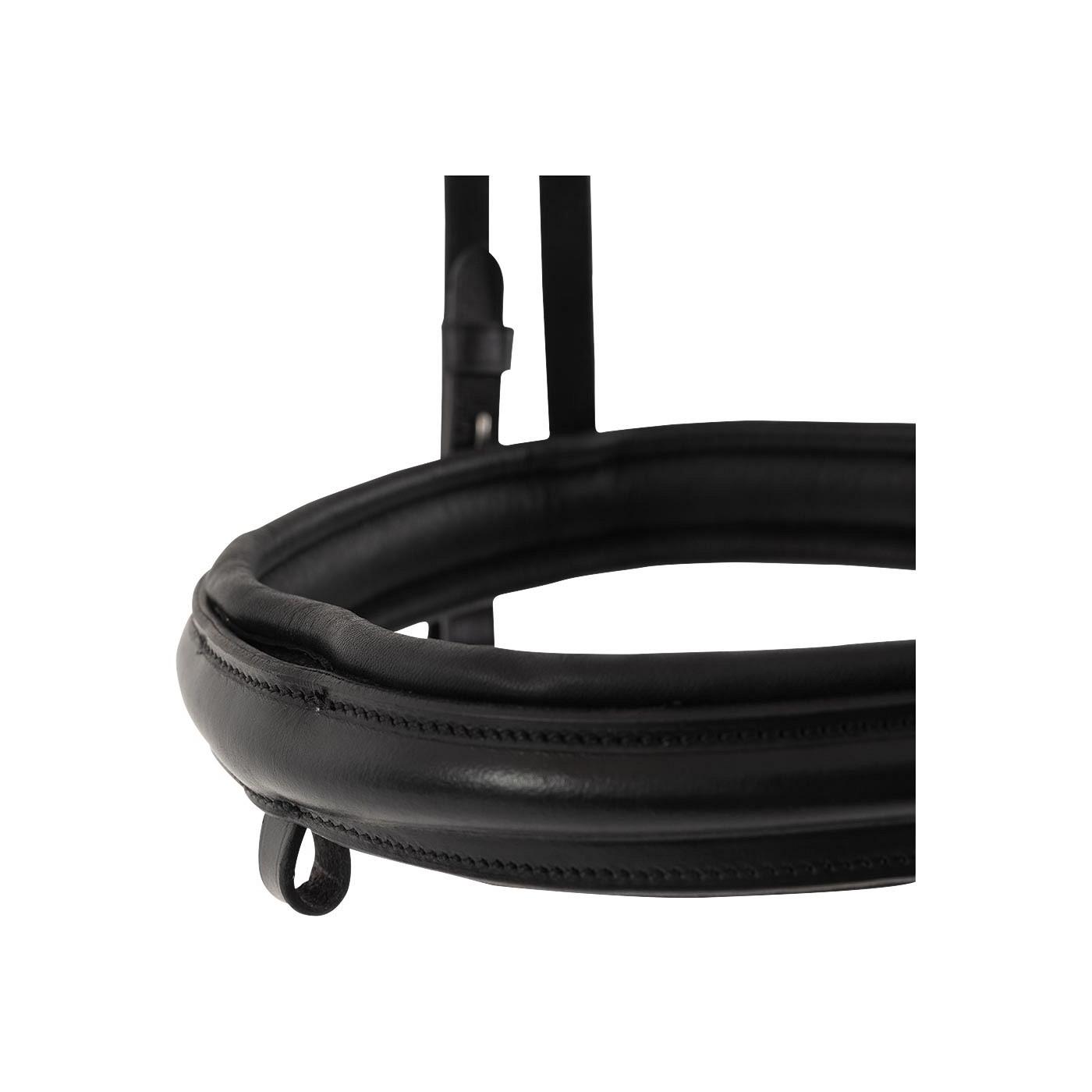 The bridle is made of soft, supple leather. The softly padded headpiece is cut back at the ears for extra freedom around the ears. The noseband is 35 mm wide and round raised. The straight browband is round raised as well to keep the design clear and uniform.