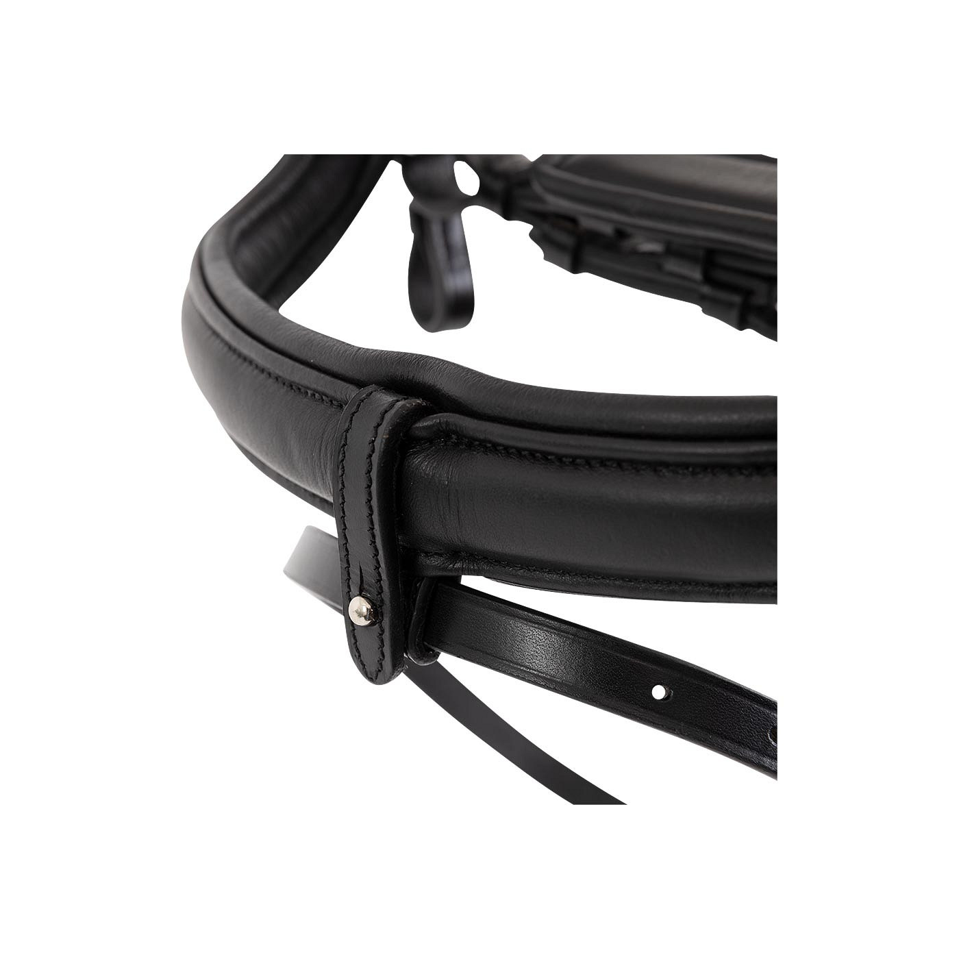 The noseband and headpiece are gracefully and anatomically shaped to ensure that the sensitive nerve endings on the horse’s head will not be put under pressure. The lining of super soft leather at the headpiece, the noseband and the chin pad ensure a pleasant wearing comfort. The flash strap is removable and the flash strap loop is also easy to remove if desired. The browband is slightly curved and inlaid with shiny crystal stones that are firmly anchored to ensure that they cannot be easily removed. The browband gives the bridle a striking, beautiful appearance.