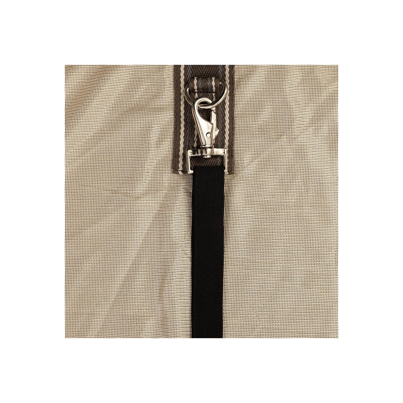 โข Detachable neck cover with Velcro closures and three elastic fastening straps with quick release clips for attachment to rug