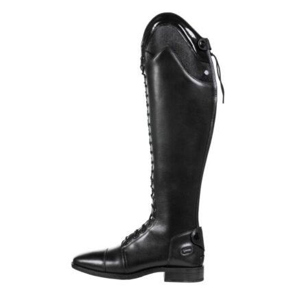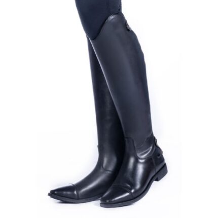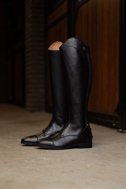 Comfort and elegance come together in this riding boot. The boots are made of stretch, flexible leather and have an excellent fit. The YKK zipper at the back has elastic inserts on both sides for a close fit. The zipper closes from bottom to top and is protected by a zipper keeper at the top. The riding boot is lined with Rock Port. This type of lining not only feels soft and comfortable, it is also breathable and antibacterial.