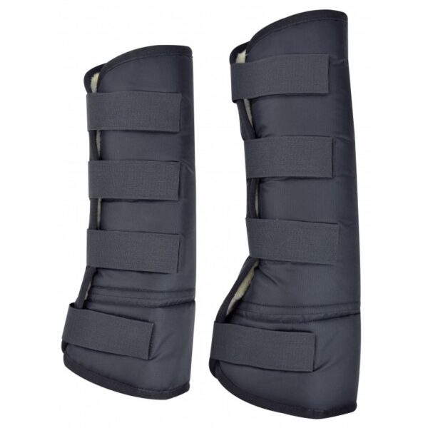 This long, anatomically shaped travel boot is made of water repellent 600D polyester ripstop and protects the fragile parts of the horses leg. The travel boot features a foam filling, a soft fleece lining and Velcro closures. Set of 4 pieces.